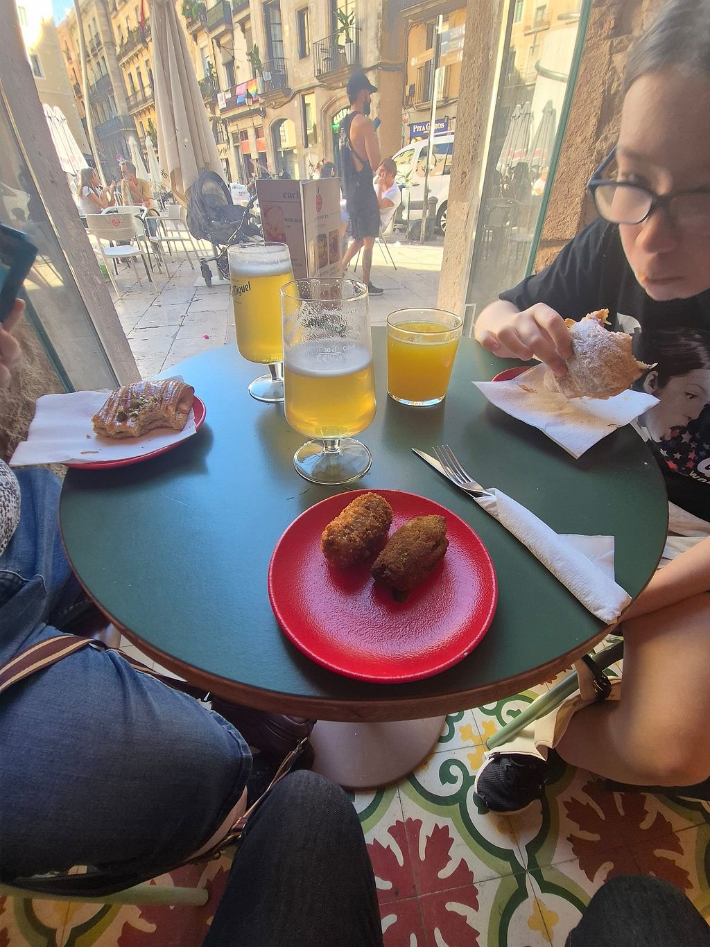This is a such a beautiful/lunch breakfast spot in the heart of Barcelona with outdoor seating. Offers many different pastries, tapas, burgers and excellent cappuccino.