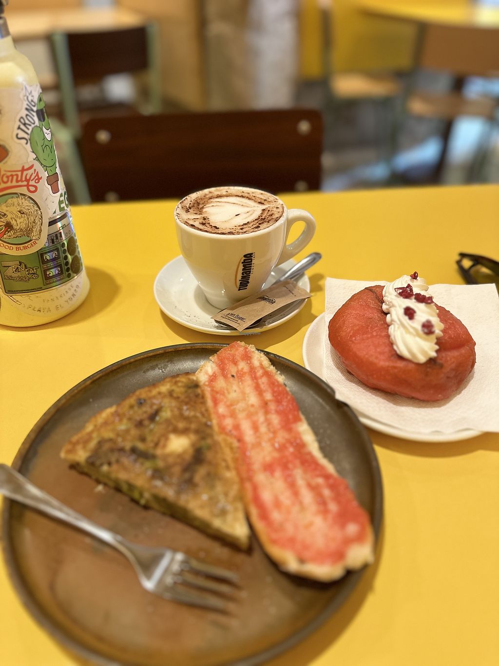 Had a lovely breakfast here. Courgette omelette with Catalan toast with tomato paste. A lovely croissant and iced matcha. The food was gluten free, fresh, healthy and tasty, friendly service.
