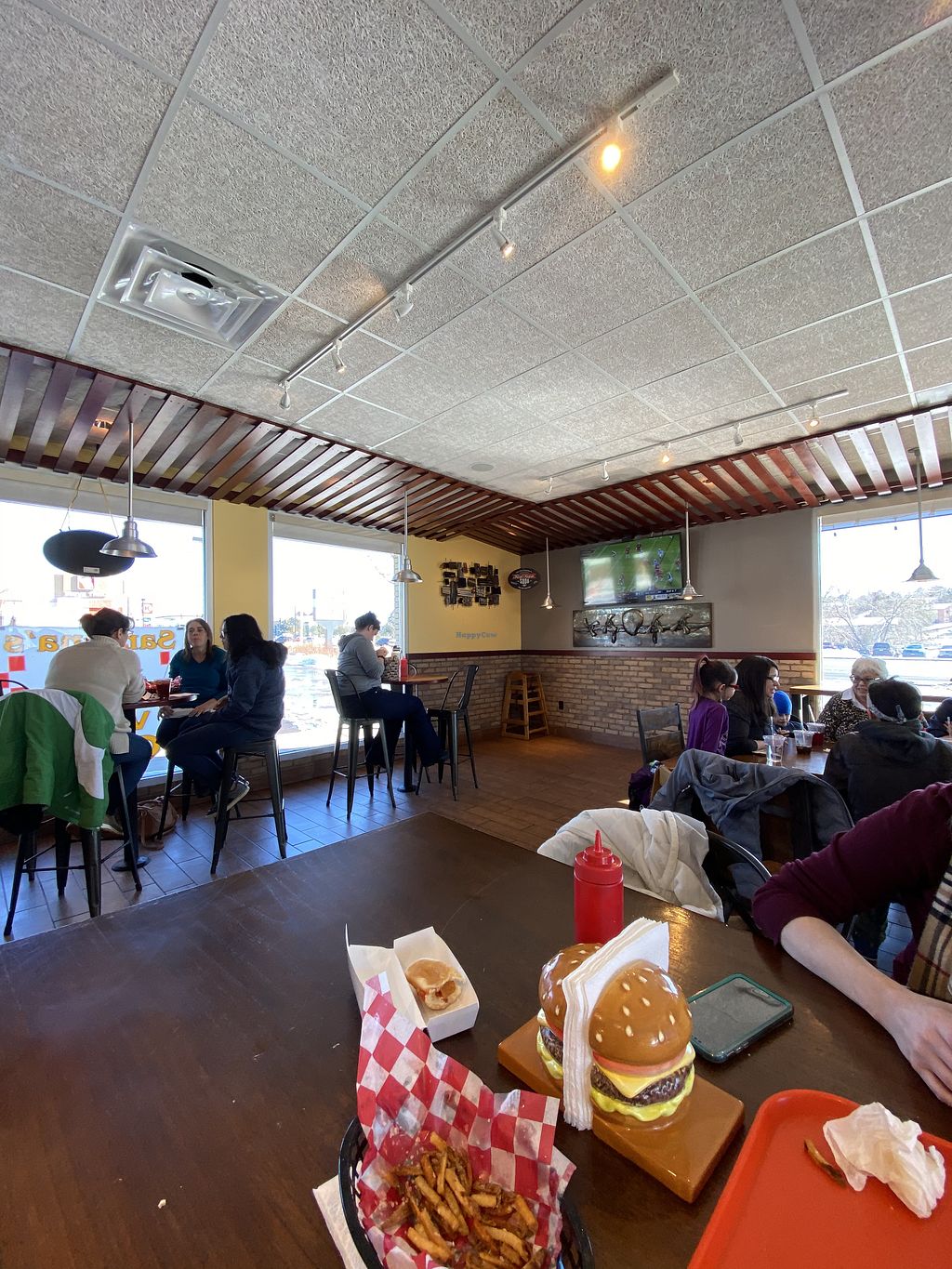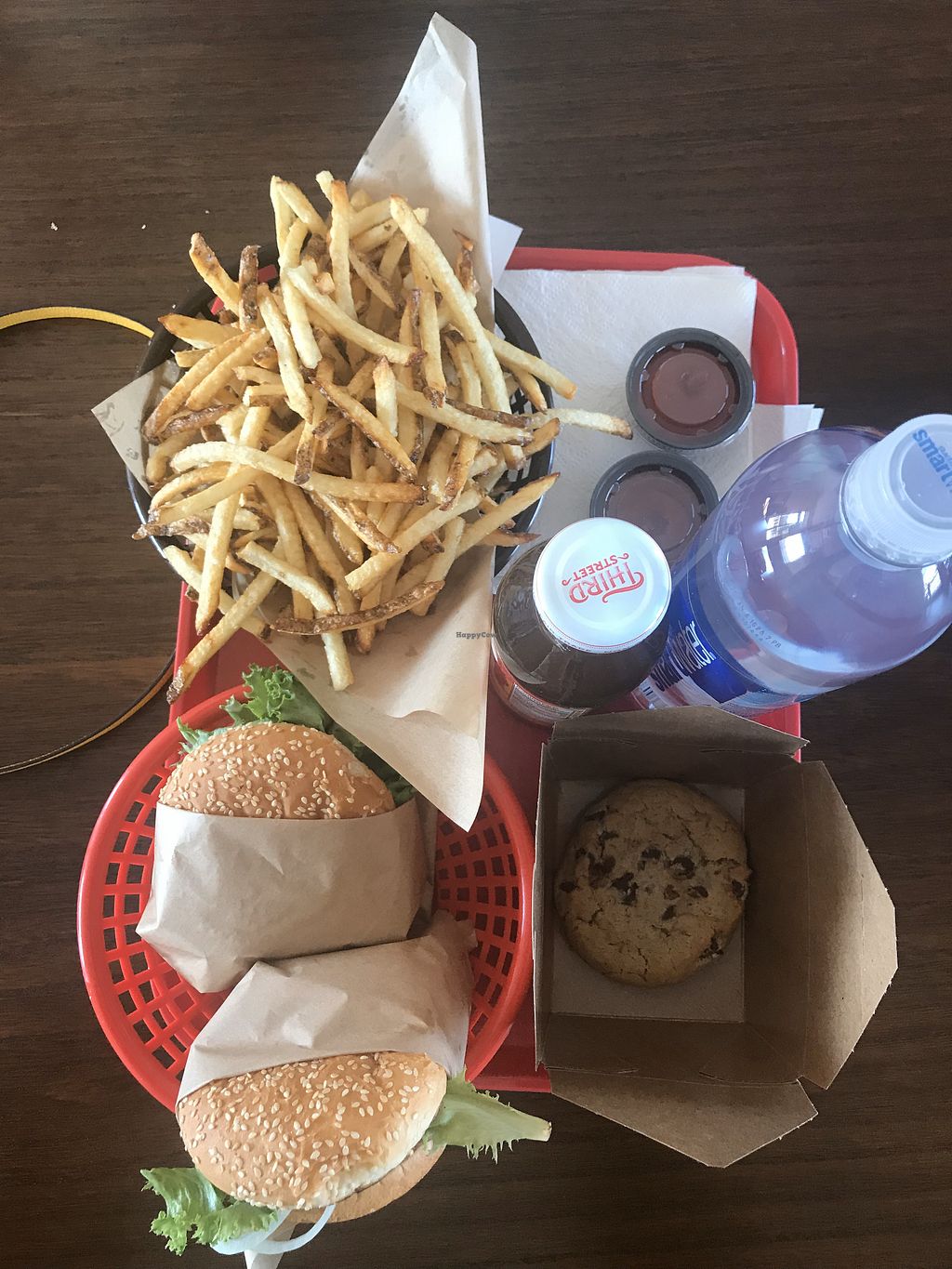 the Bacon Cheeseburger & regular fries at Santana's Vegan Grill