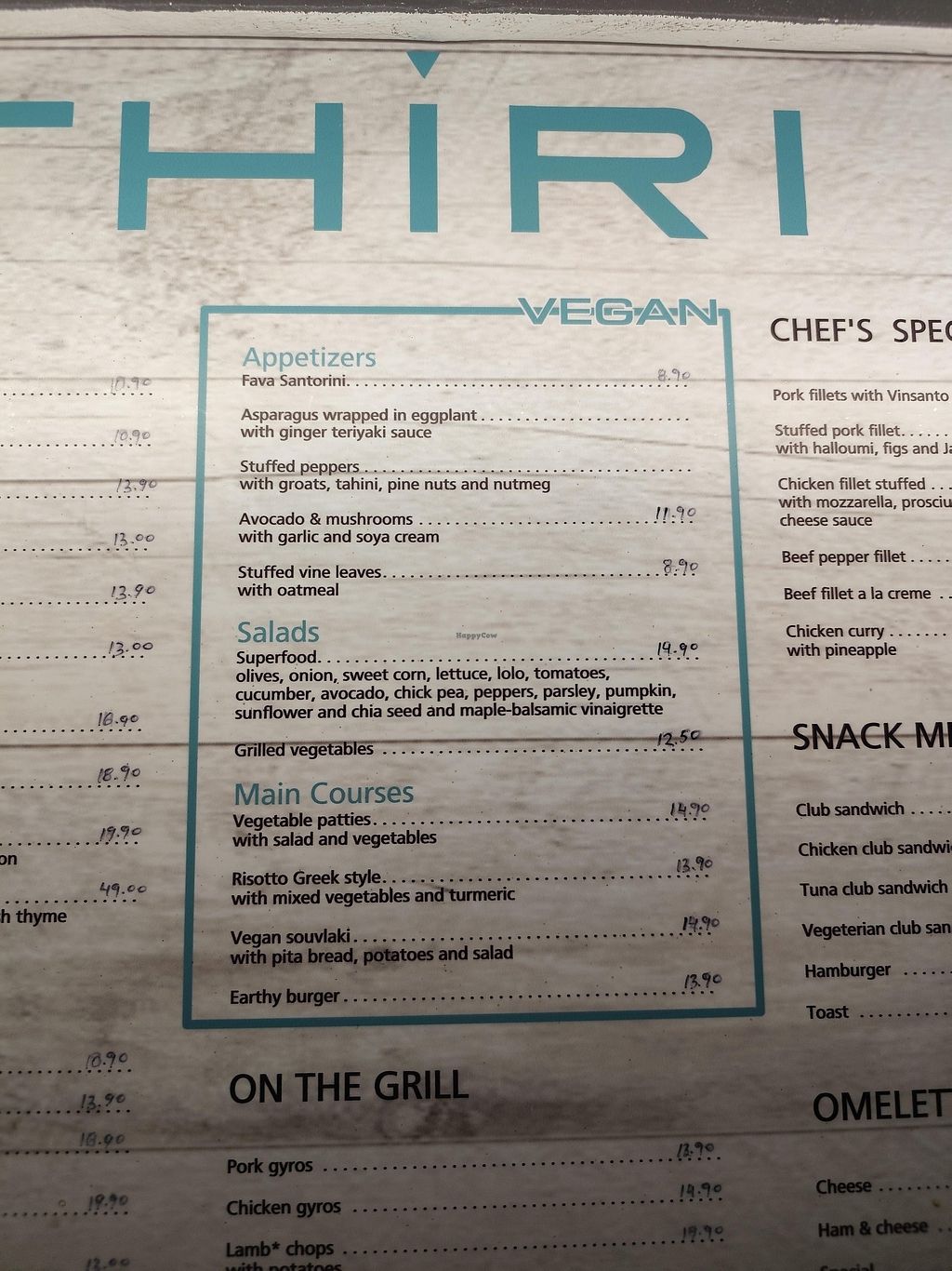 Very busy taverna with dedicated vegan menu. Not cheap, but then most places here aren't.