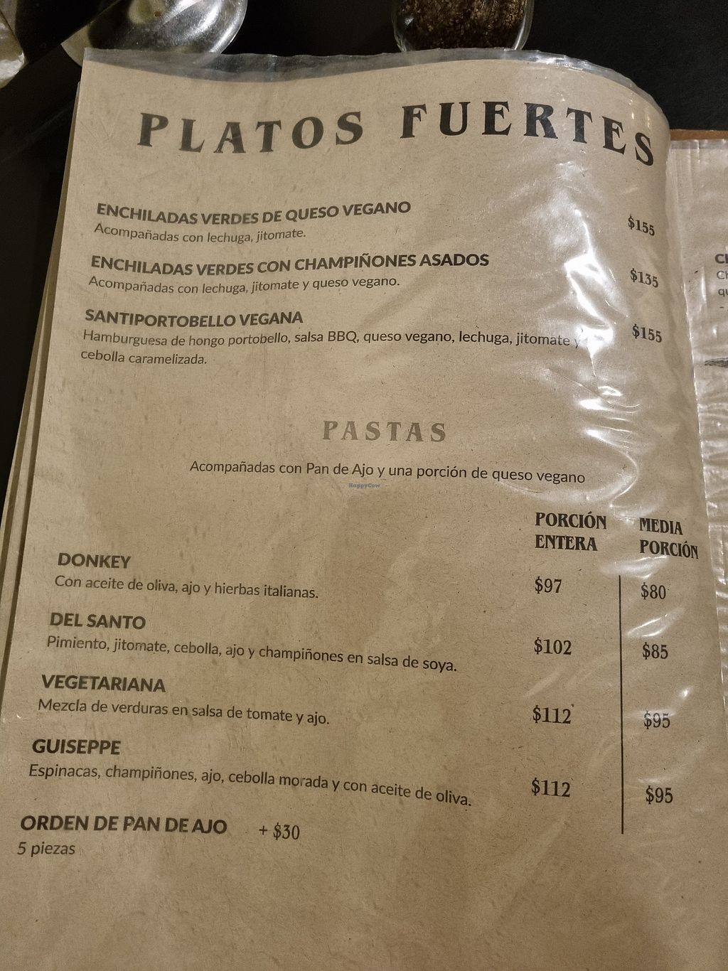 Popular restaurant in the touristy part of the city. When asked they give you a vegetarian vegan menu (each one has its own section). Salads, sandwiches, soup, enchiladas, burger, one dessert. Quite a few options.