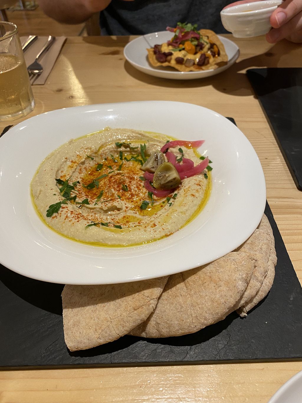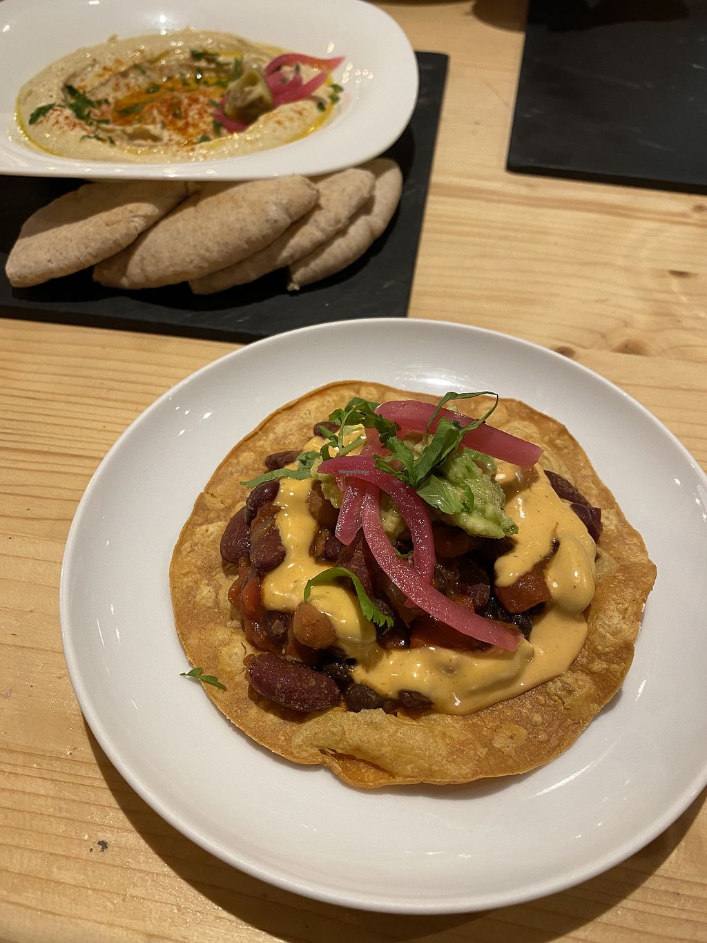 He escuchado mucho sobre el sitio de mis amigos y tenía las expectativas altas. El sitio es muy agradable, los camareros - muy amables, la carta tiene buena variedad de comida, pero el sabor no me gusto mucho. Hemos pedido la tabla de hummus, tostadas de chef y los tacos con alubias. No estaba mal pero tampoco me pareció sabroso. Por eso pongo 4 estrellas.