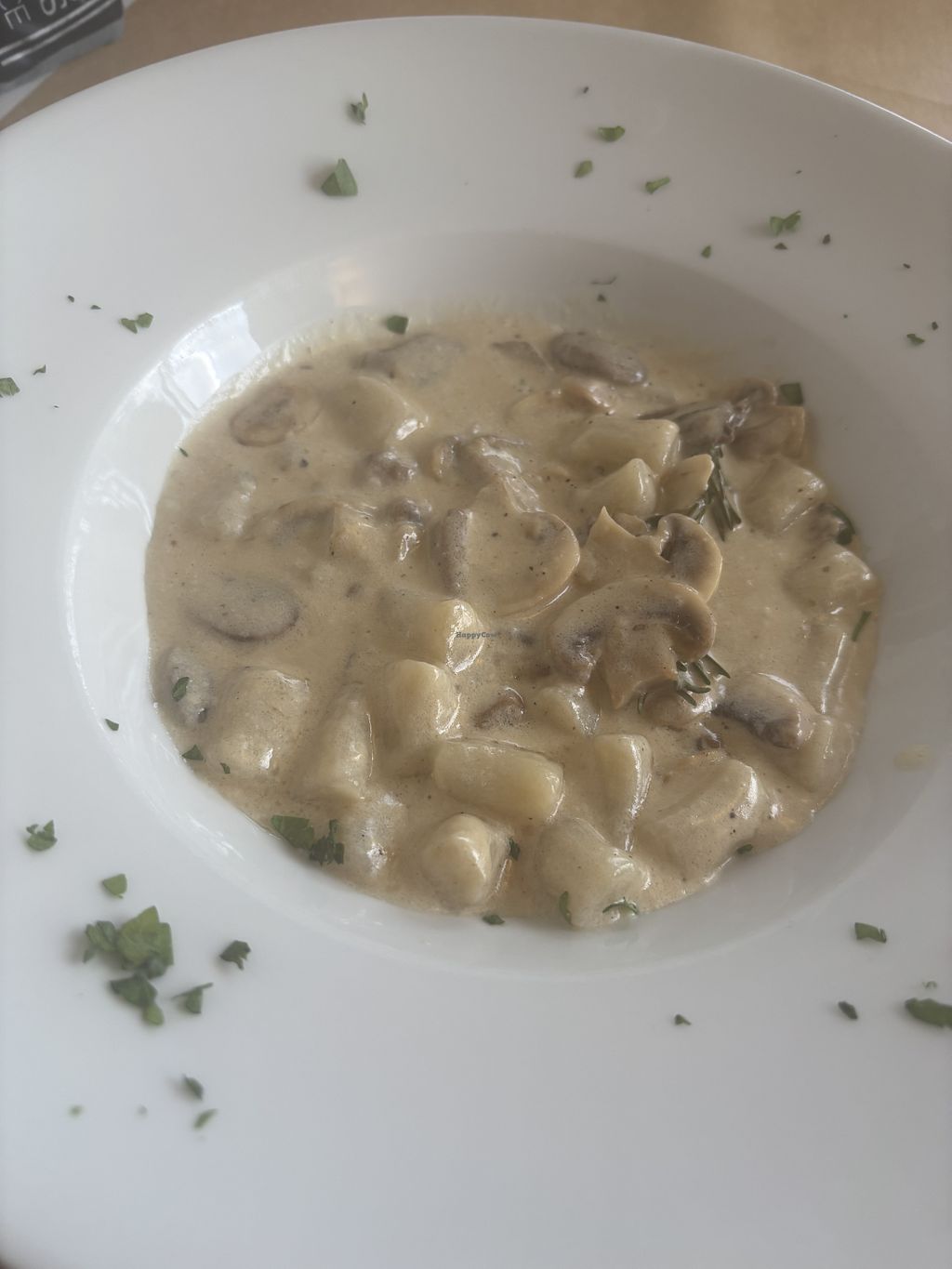 Pros: Vegan sausage main, Creamy mushroom gnocchi, Local wine