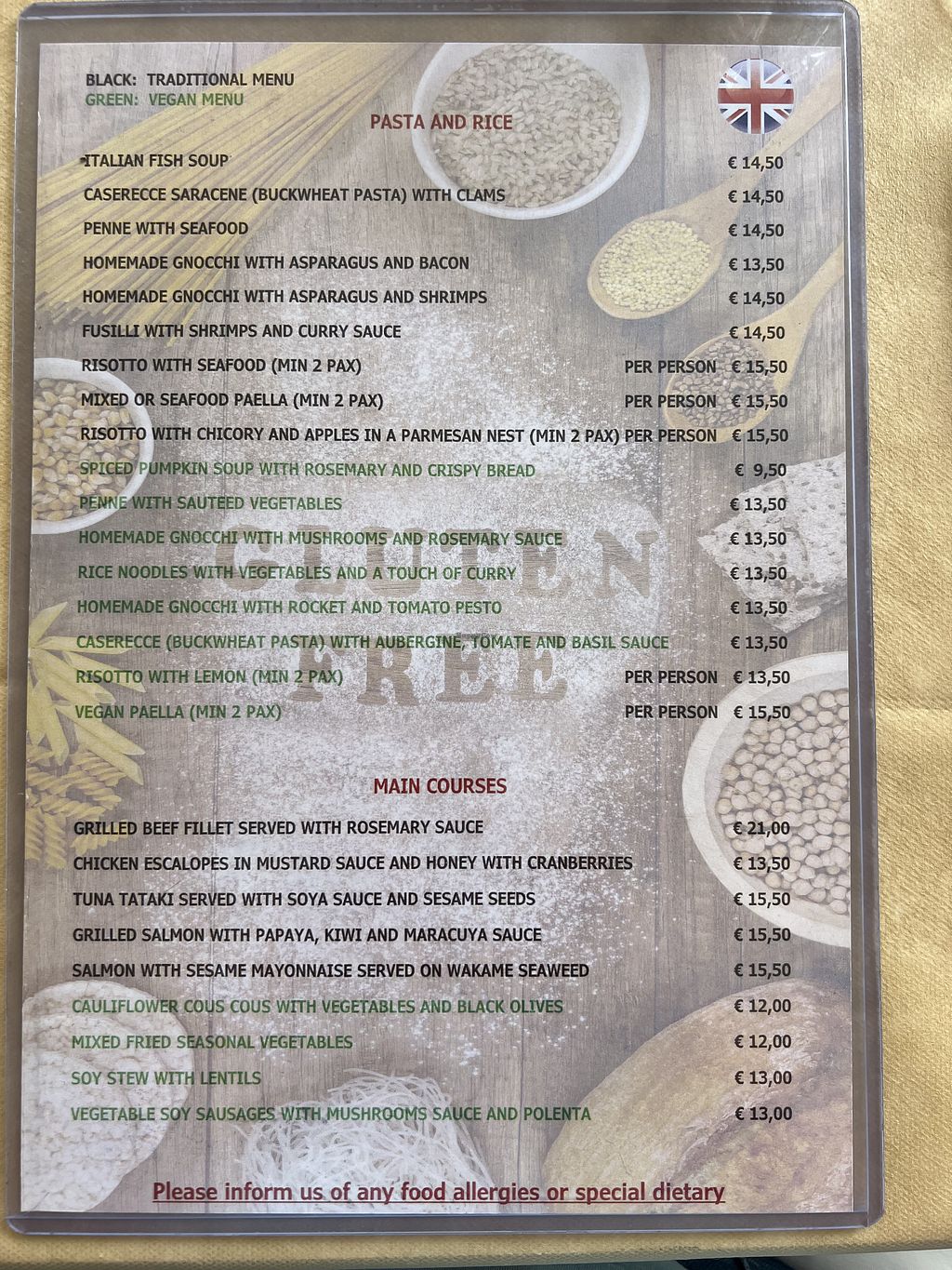 Gluten-free and nice Vegan options - Edit