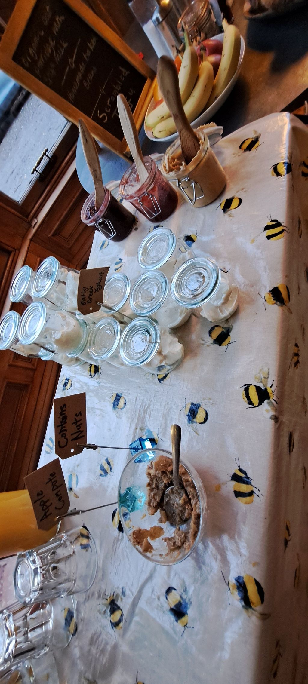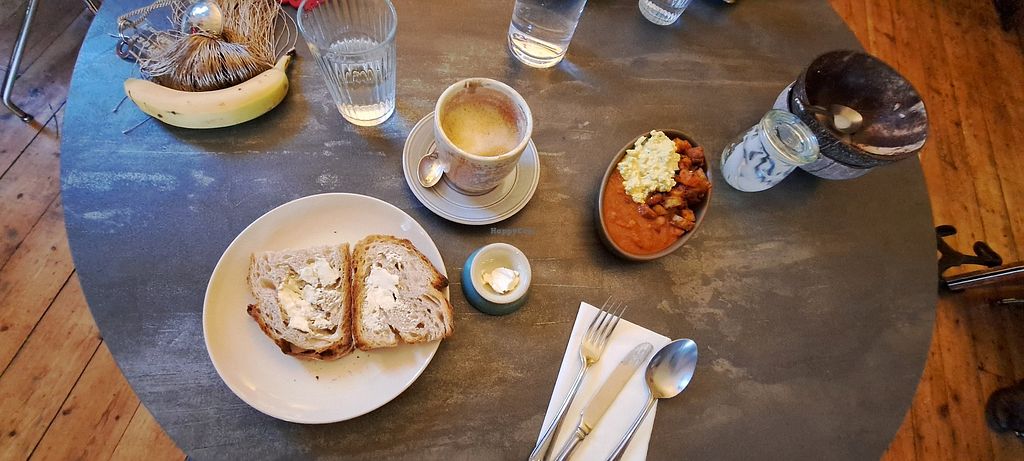 Breakfast: homemade beans, potato hash, scrambled tofu