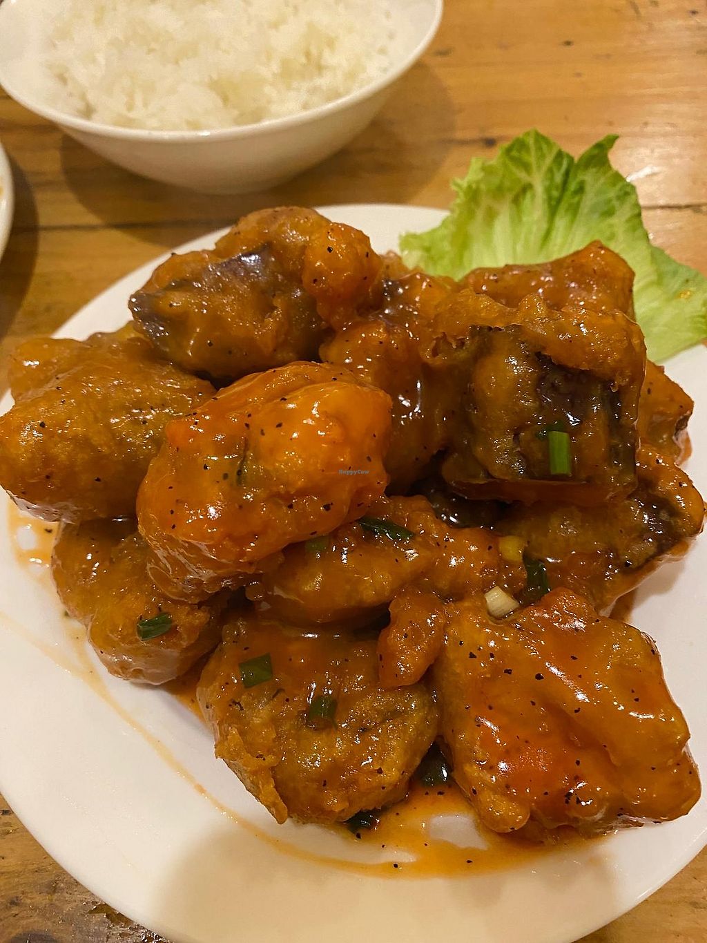 Ordered the Sapa vegan kitchen fried tofu which was 9 delicious tofu Pattie's served with rice and salad. They also served free green tea!