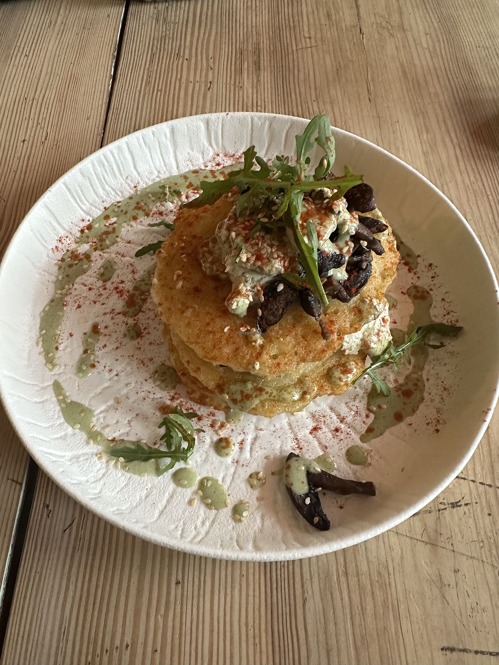 Right to left: pasta of the day, mushroom draniki, avocado toast