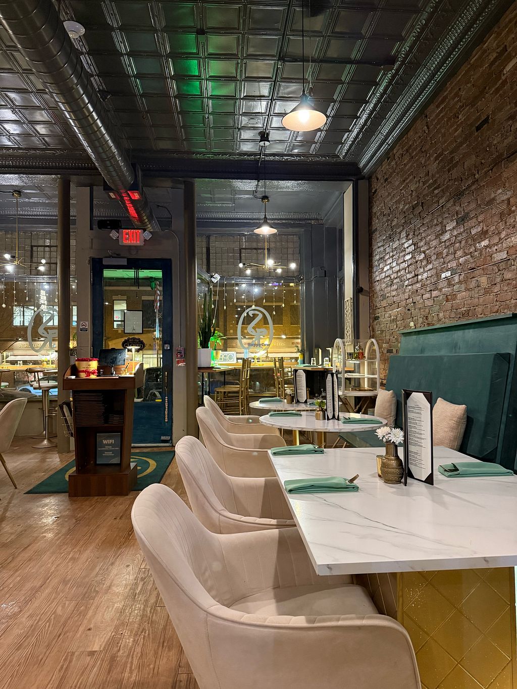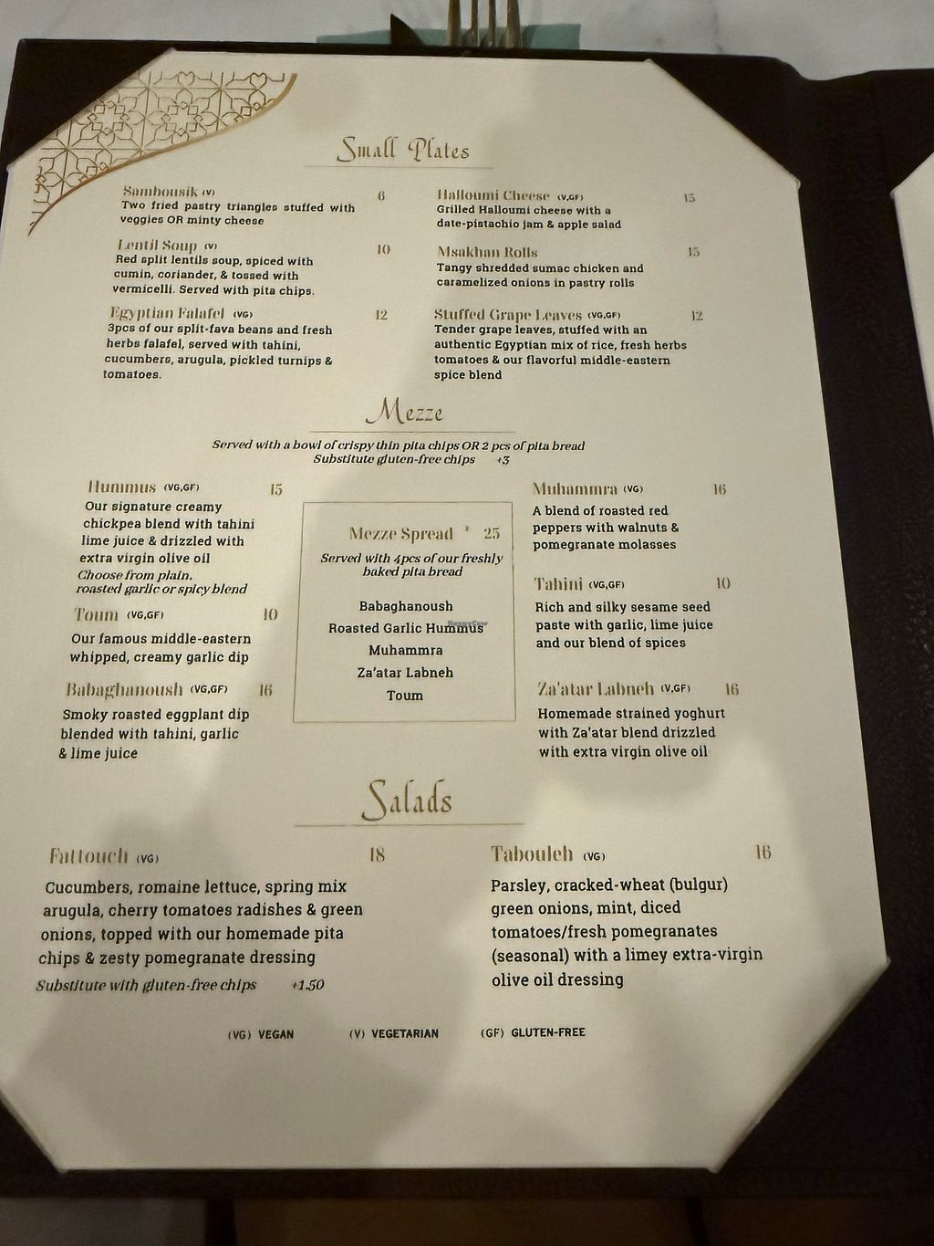 Serves meat, vegan options available. Restaurant offering clearly labeled vegan and veganizable dishes such as falafel, hummus, toum (garlic sauce), baba ghanoush, muhammara, tahini, pita bread, salads, and falafel wraps. Open Tue-Sat 12:00pm-3:00pm, 5:30pm-9:00pm. Closed Sun. & Mon.