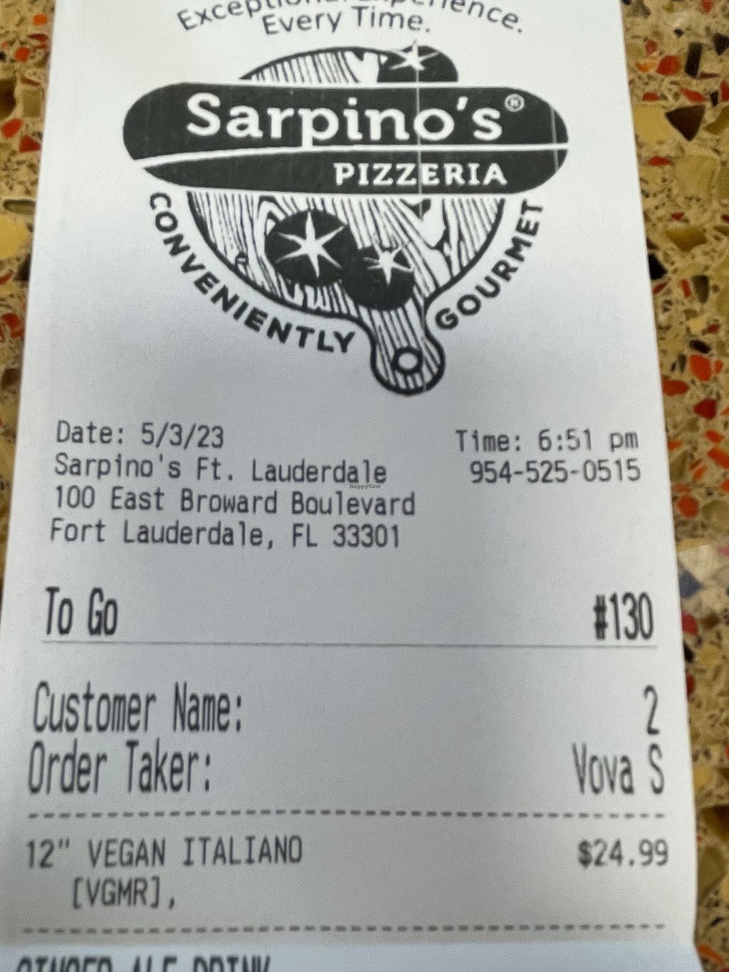 Very disappointed with Sarpinos tonight. Bought 12" pizza... paid $24.99 tax. No flavor at all.. couldn't taste any basil, any garlic, any oregano, nothing. no flavor in the cheese or veggies. I can't remember having a pizza this bland in ages. I'd rather go to Blaze pizza for $10 and get a pizza same size and great flavor.