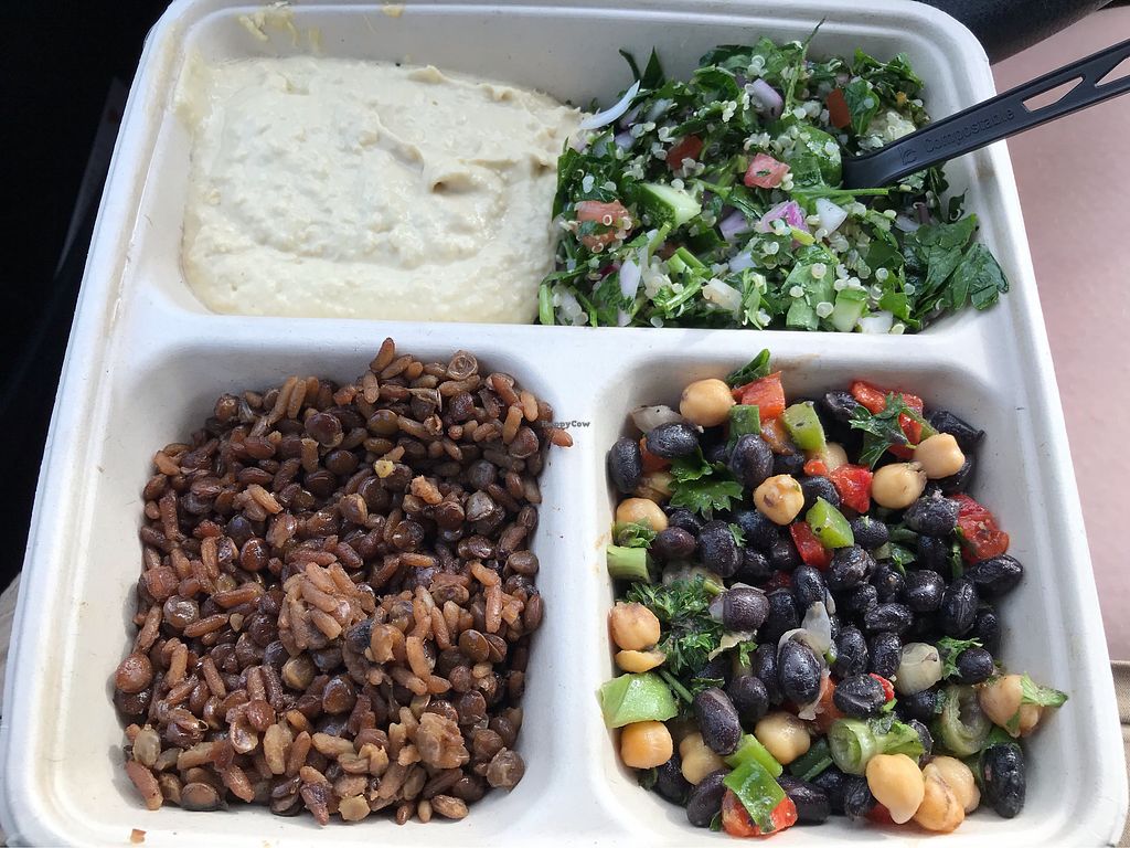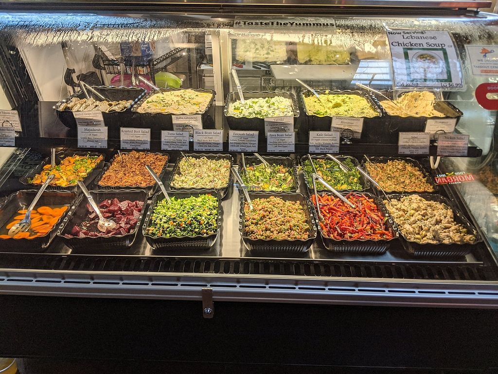 Serves meat, vegan options available. Pay-at-counter Lebanese food with many marked vegan and vegetarian options. Could order off the menu or choose from the hot and cold bars. Several vegan dessert options. Located in the Morgan Street Food Hall. Reported closed January 2023.