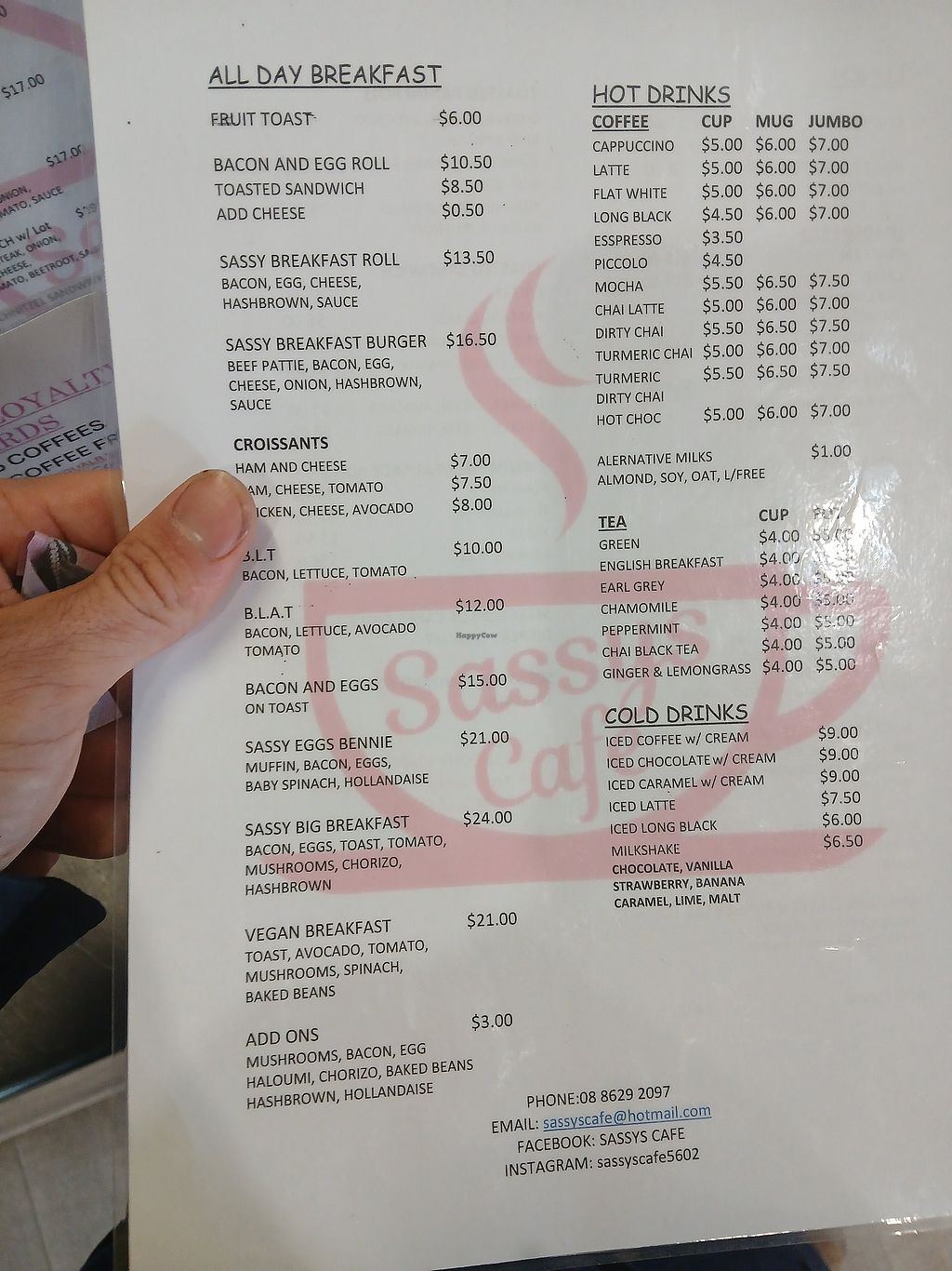 Lacto Ovo Western Take-out Honey Breakfast Non-veg Serves meat, vegan options available. Cafe in Cowell Main St serving a vegan breakfast plate, hot chips, wedges and plant milks for drinks. Open Mon-Fri 6:00am-2:30pm, Sat 7:00am-2:30pm, Sun 8:00am-2:00pm. More
