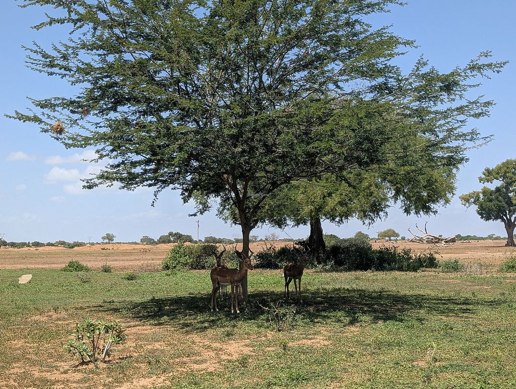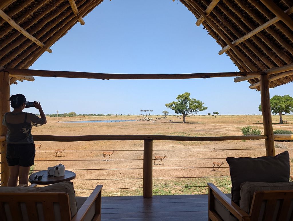 Non-fenced lodge in Tsavo National Park. Many animals come and go across the lodge's territory. Lodge is not vegan, but can accommodate vegans. Focus on environmental sustainability. Specify vegan when booking.