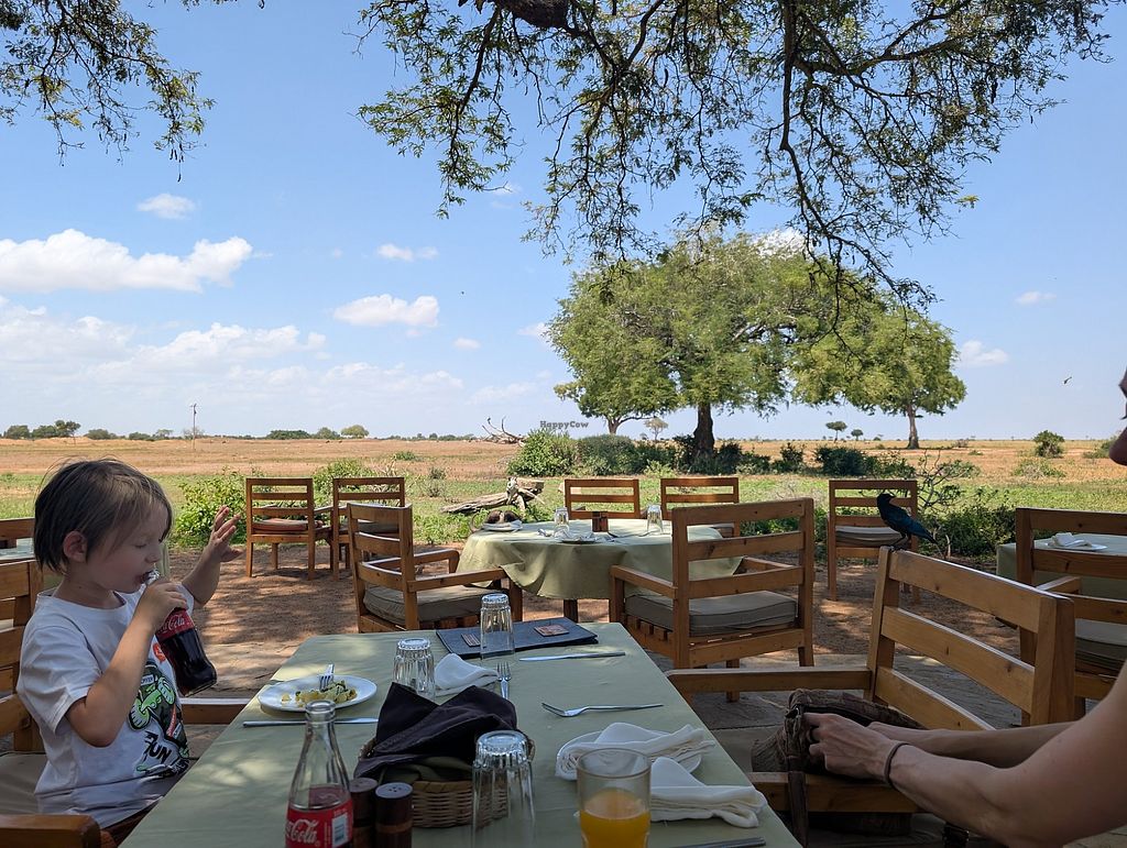 This lodge facility at Tsavo East is a very amazing stay. The fenceless camp near a waterhole will take your breath away, you will see all kinds of animals frequenting and you will be so close to them! The tents are very comfortable, with great showers, a comfortable bed and a porch to relax on. The food served three times a day was absolutely delicious. We told them we were vegan in advance and part of the buffet was always made vegan. Lots of delicious Kenyan food, many fresh fruits and excellent service. This is definitely an amazing place to stay as a vegan.