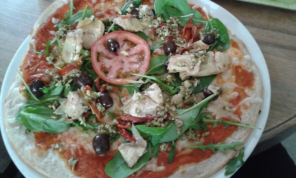 There is one vegan pizza with olives, artichokes and sun-dried tomatoes which was really good. They wouldn't let the other pizzas be made vegan. The food wasn't clearly marked with what was vegan but the staff were helpful. We didn't have it, but there was a vegan buffet advertised. The green mango smoothie was really good.