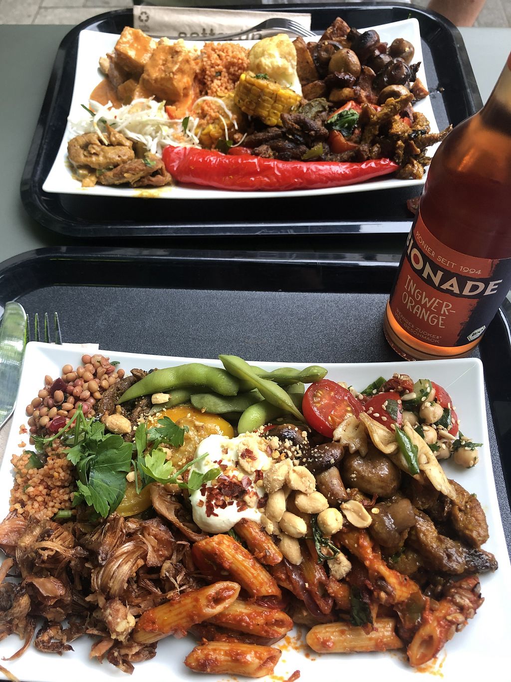 I had a medium plate and at first thought it was kinda small and I wouldn’t get full but in the end barely finished it 😂 everything I tried was really good and I also liked that there is a sign with the dish’s ingredients on the top (only in German tho I think) so that’s helpful if you have any sensitivities. Staff was very nice too.