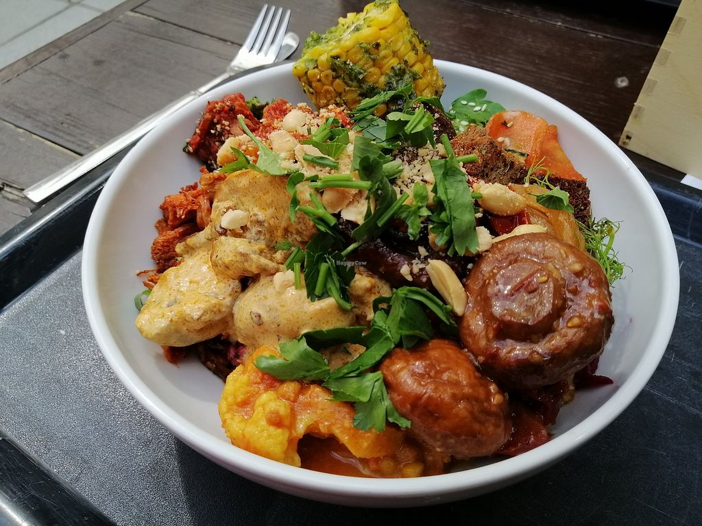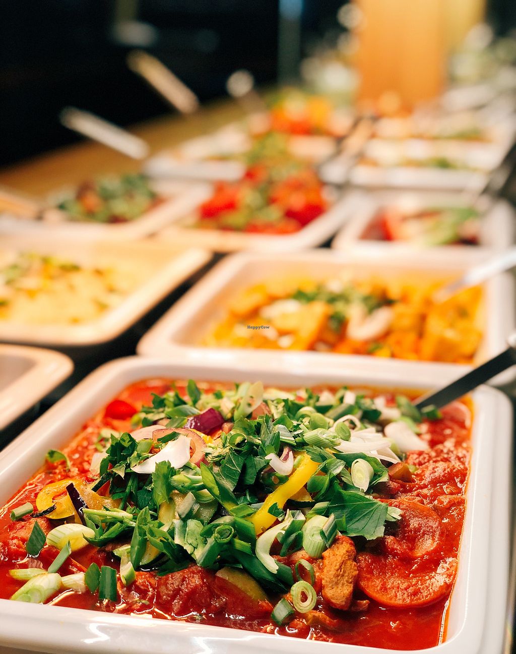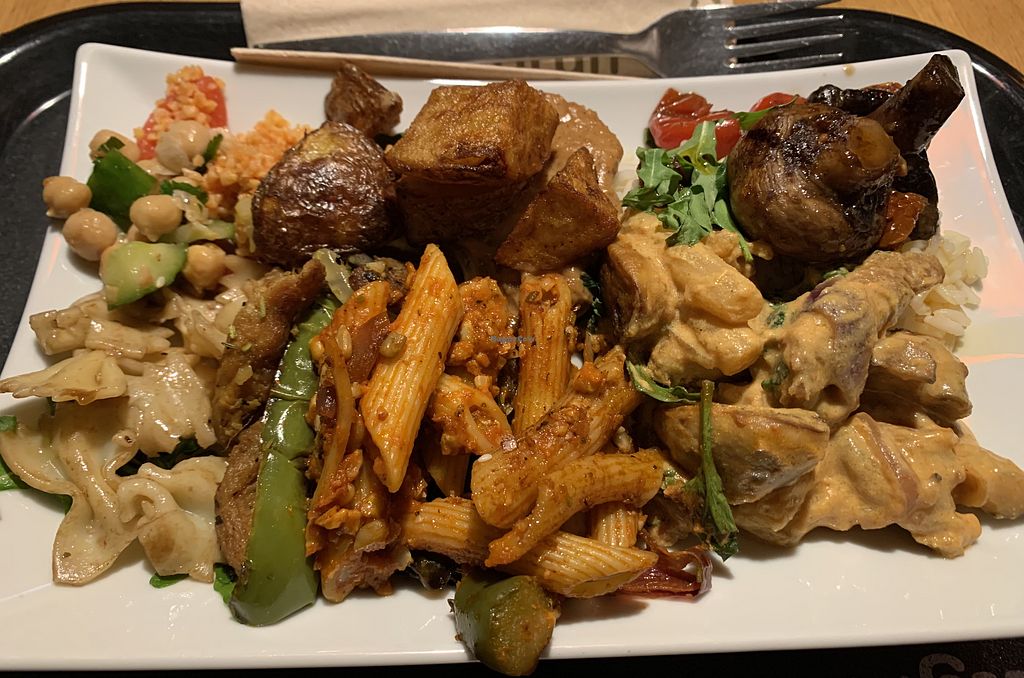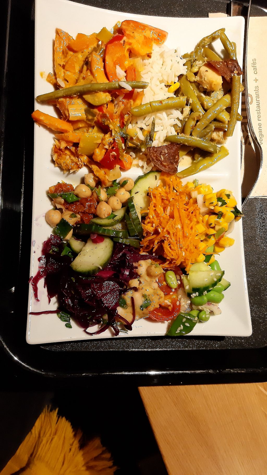 Sehr zu empfehlen! Essen lässt sich selber am Buffet zusammenstellen, Preis je nach Tellergröße. Ausschließlich vegane Hauptgerichte mit kalten Beilagen-/salate.