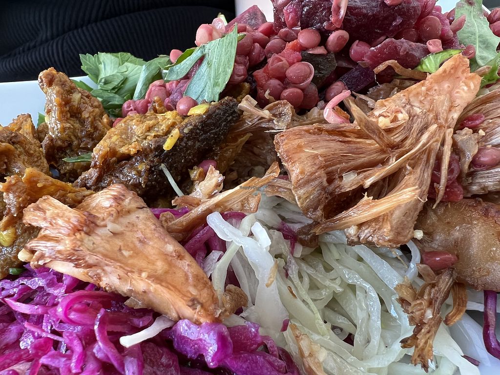 Not exactly cheap, but worth the price! You can choose from three plate sizes and then fill your plate with as many things from the buffet as you can fit on it. I was there two times and some dishes stayed the same while some changed, all of them completely plant-based and delicious.