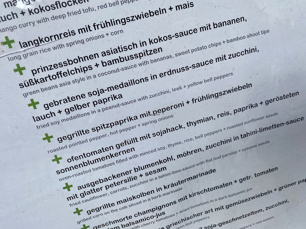 Cons: No tapwater (in the whole of Germany...?), Hard to see the food signs