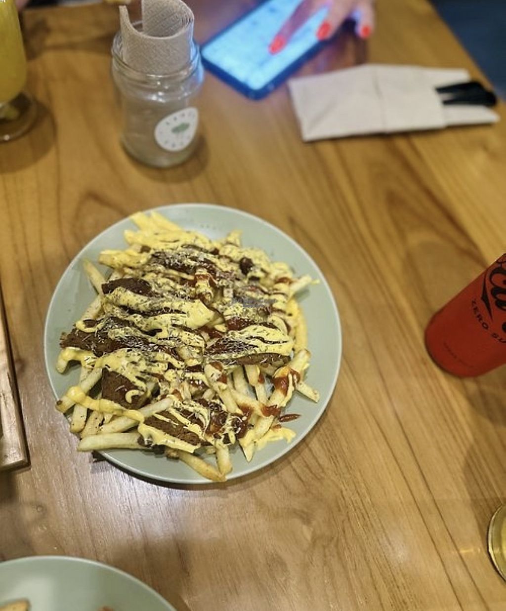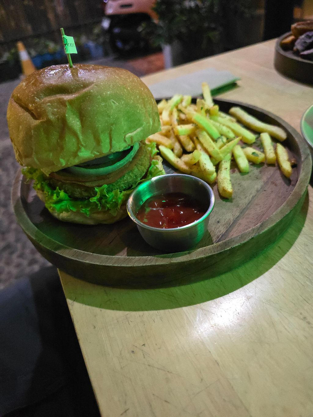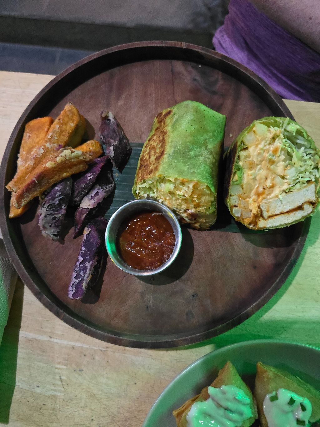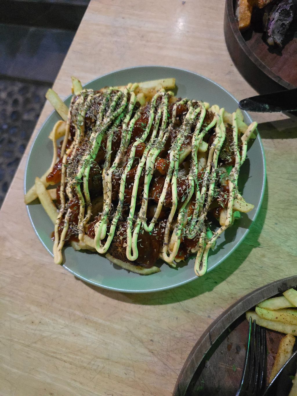 Visited several times when visiting Sanur. It’s only a small place but packs a punch. The variety of vegan dishes available on the menu is excellent. I tried 2 of the burgers (not in one sitting although I could have handled it). The cauliflower bites were delicious, as were the samosas and loaded fries. Our samosas came out cold and the staff were so apologetic and brought us some fresh ones out. Really lovely polite staff. Lovely vibe inside. Wonderful little gem in Sanur opposite the busy shopping centre (Icon Bali)