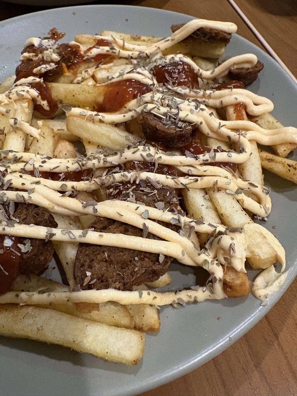Nice little all vegan restaurant with comfort food. We rook the burger. I really liked it, but two of my kids weren’t a big fan of the cheesy sauce.