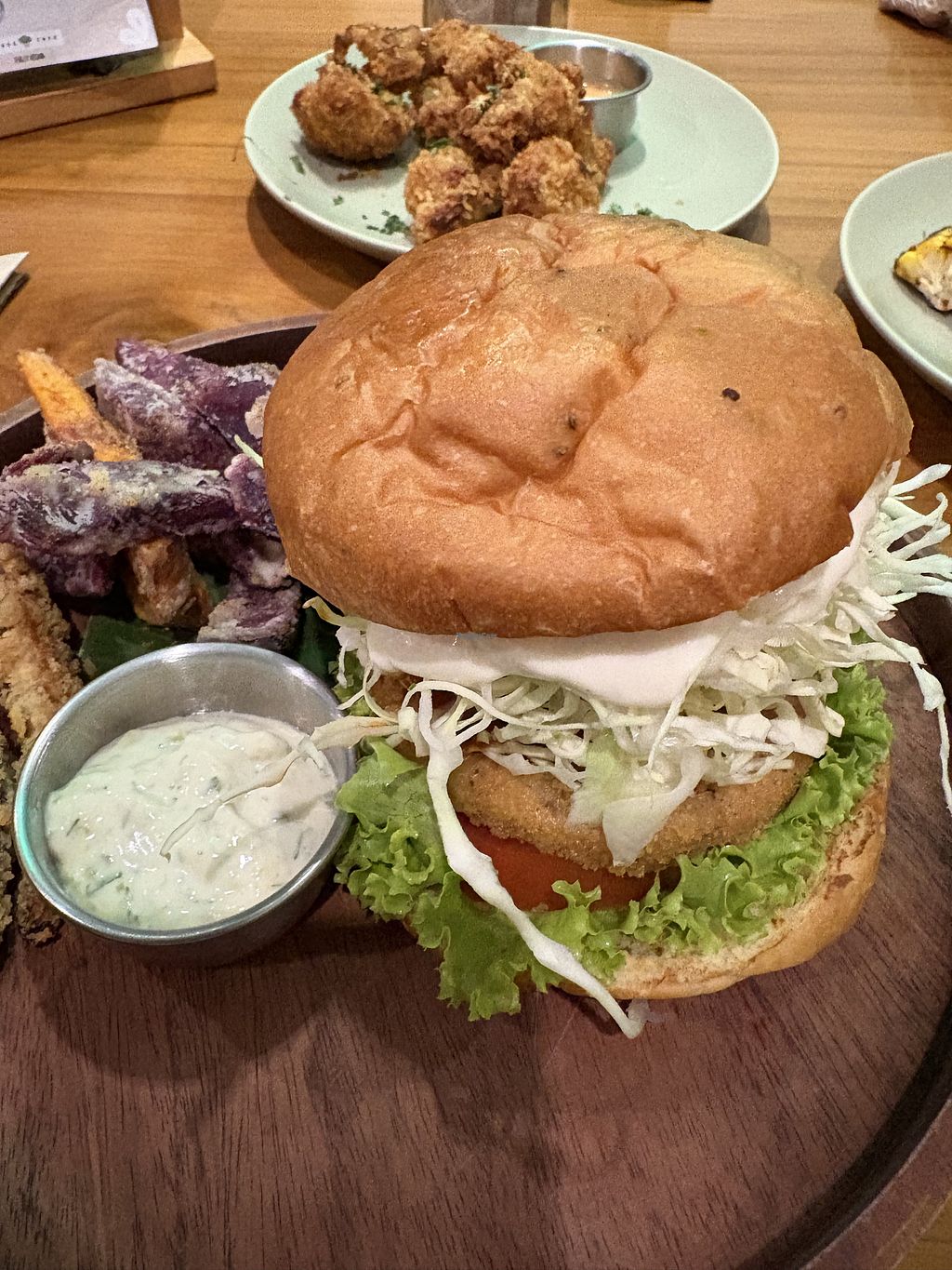Everything we ate here was delicious. The pesto rice, tofu egg and tofu skewers were delicious. One of the best vegan cheese burgers we’ve had. Everything was cooked and presented with care.