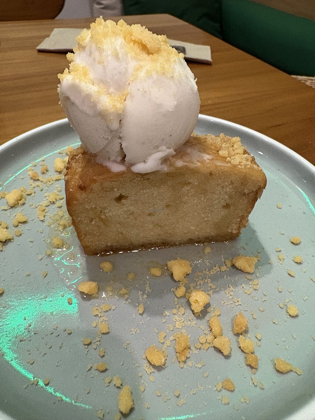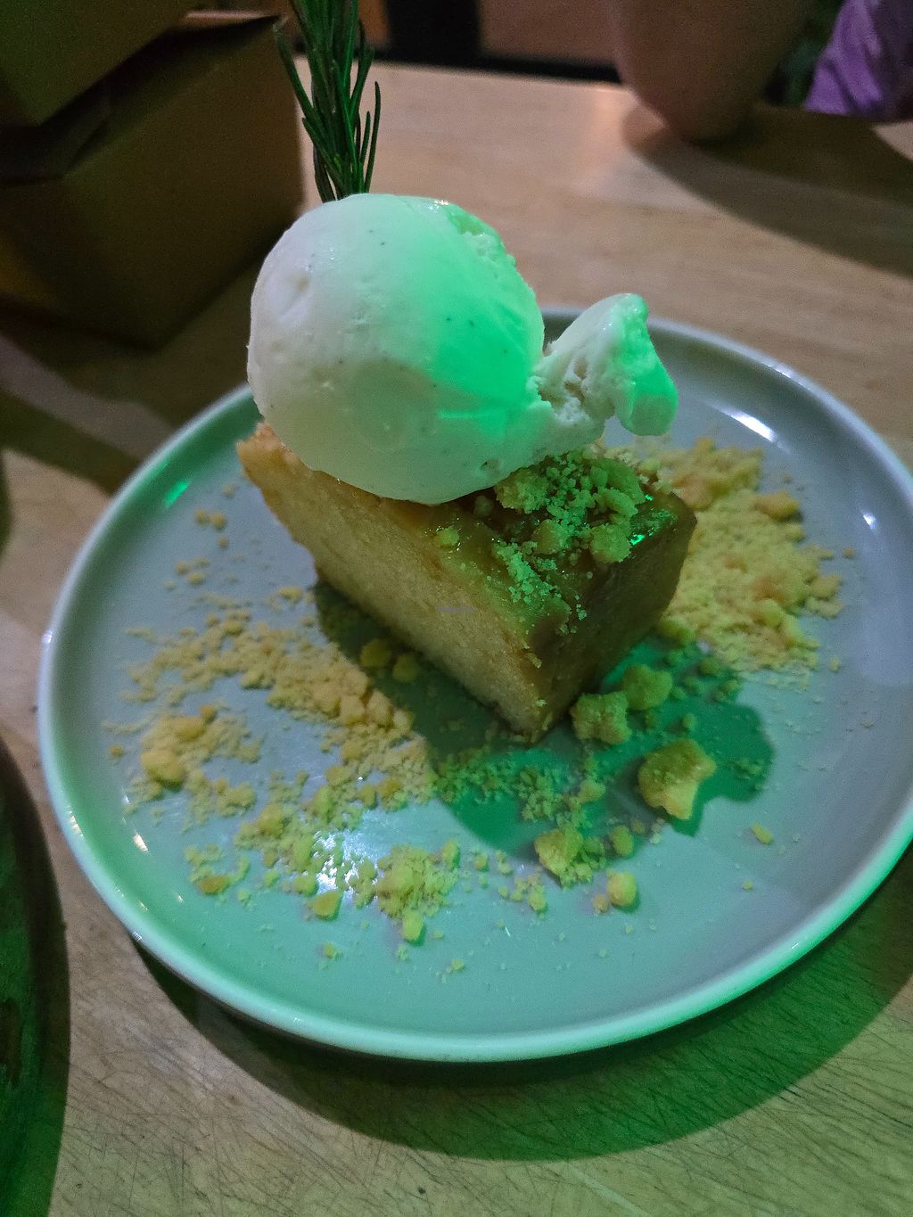 The dessert was the Coffee Cream Pie, this frozen dessert should be served cold, and the team member should have stored this pie in room temperature a few minutes before serving it to you 😁🙏🏽 Sorry about this. However, we are still looking forward to your message ya 😄 The free dessert deal still stands 💚