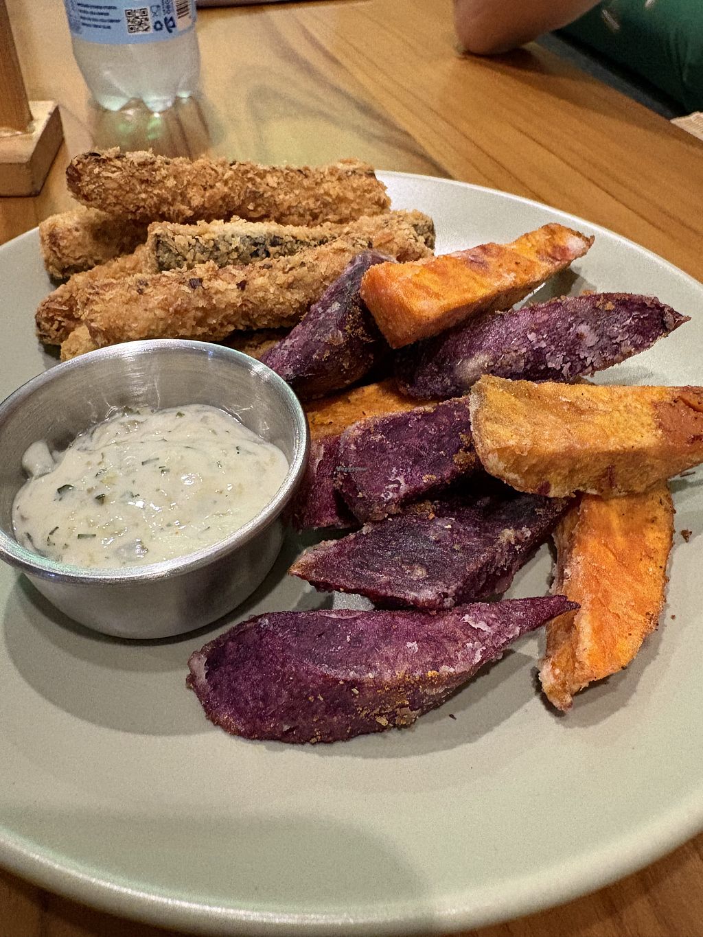 We were served with gratitude and professionalism. Our server was well educated as to which menu items were allium-free, relating to an allergy my wife has, that very few establishments seem to be aware of. Oh… and the food was good. I recommend it for both seasoned vegans, and those just trying it out.