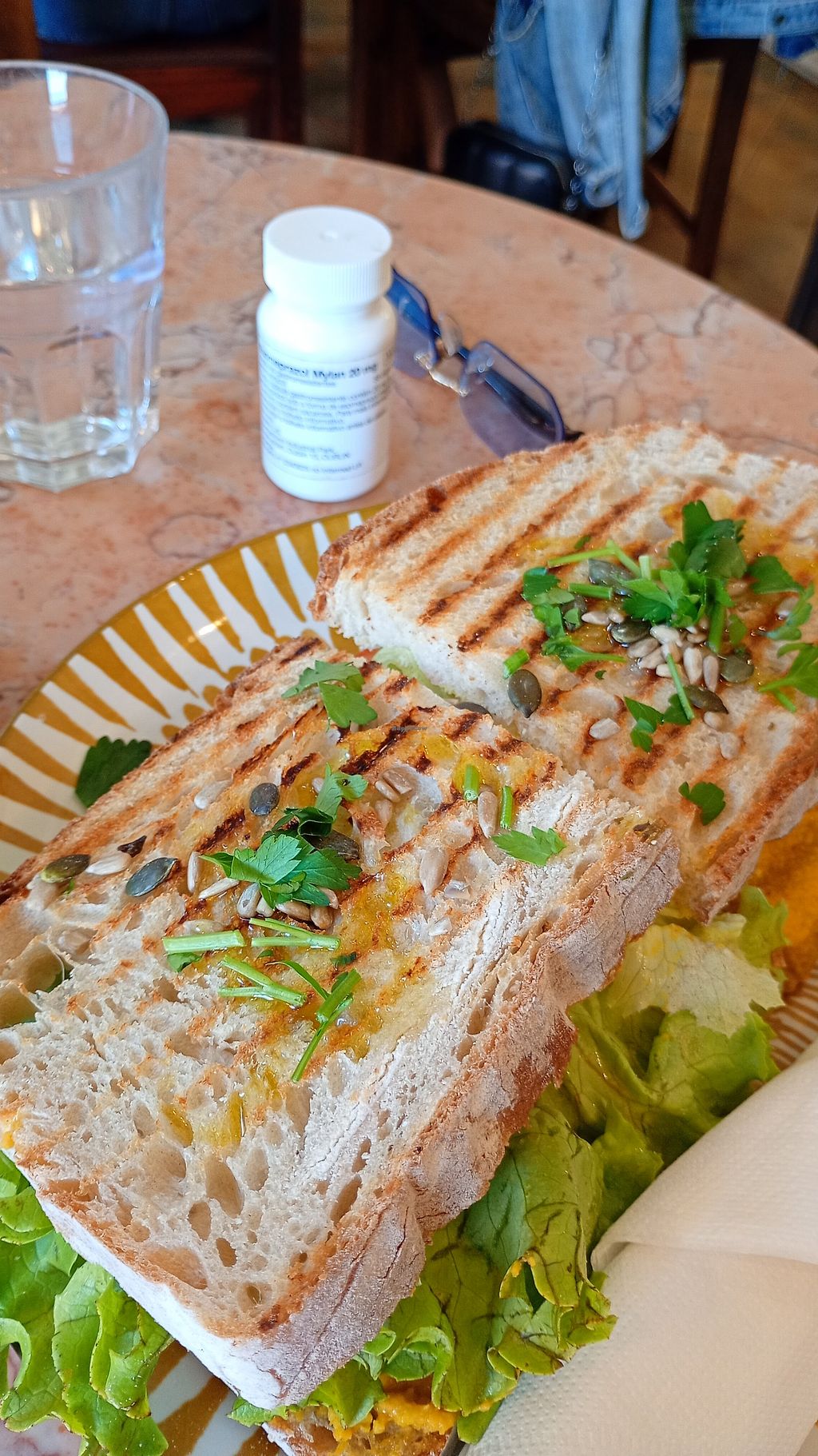 Saudade is situated few metres from the train station in Sintra. I had a vegan sandwich that wasnt listed on the menu but I asked for it. It was quite tasty but too small for me. I also had cafe latte with soy milk. It was too hot and not very tasty.