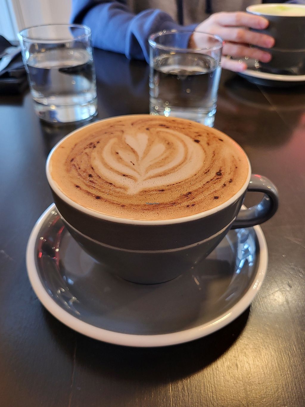 Wow this place is fantastic. My wife and I both had the chik’n and waffles (hers gluten free, mine regular) and it was exceptionally good. Oyster mushrooms were the “chik’n”. Both cappuccino and chai latte were amazing.