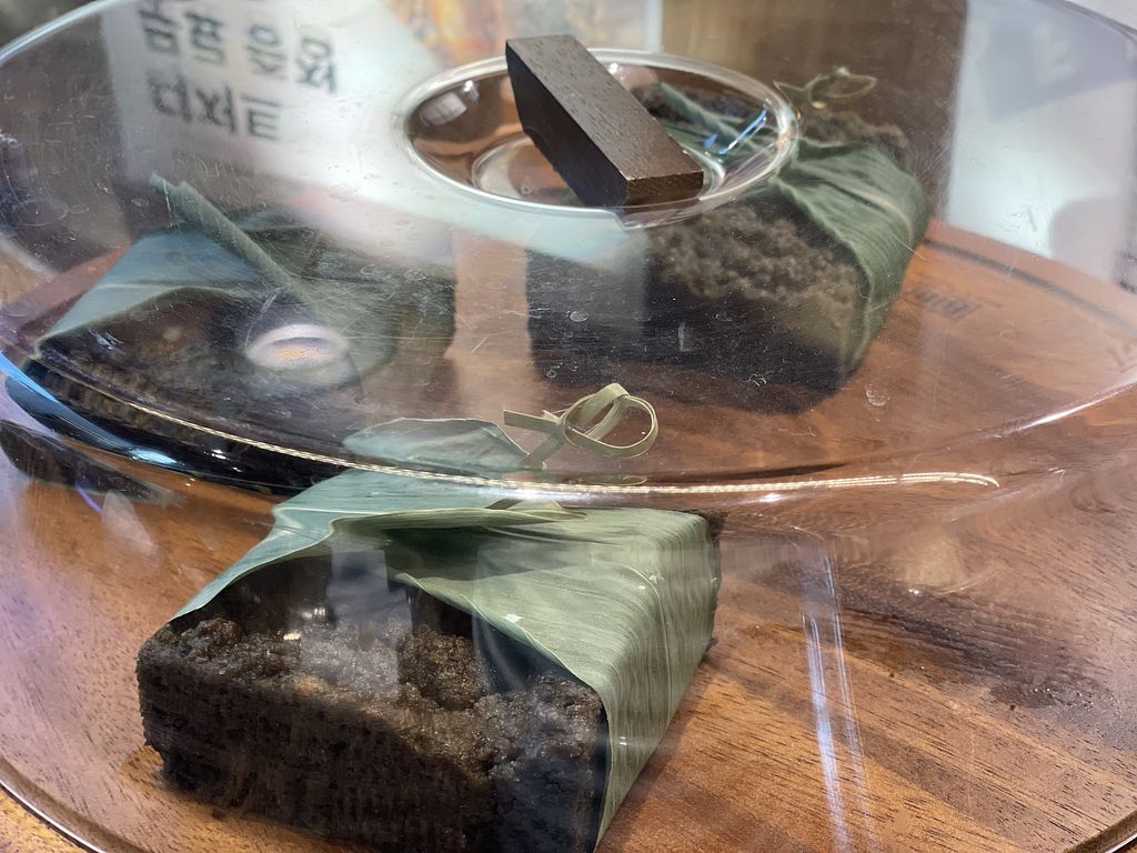 Wow. I can’t wait to come back here to chill with friends. I was so full from my meal next door that I just grabbed some things for take out, but the interior of this place is where it’s at!! I was also too full to try the sesame latte. It sounds so good I can’t wait to come back for it! I went with a delicious blended iced tea instead…the peppermint lemongrass, and it helped me to get over my fullness. I also took the perilla leaf Madaline home and it was super yum. The fact that it was wrapped in a perilla leaf was such a nice touch. I will definitely be back for that latte and to bask in the beauty of this space!