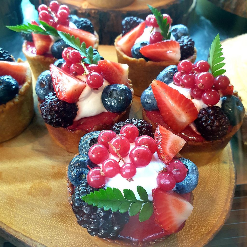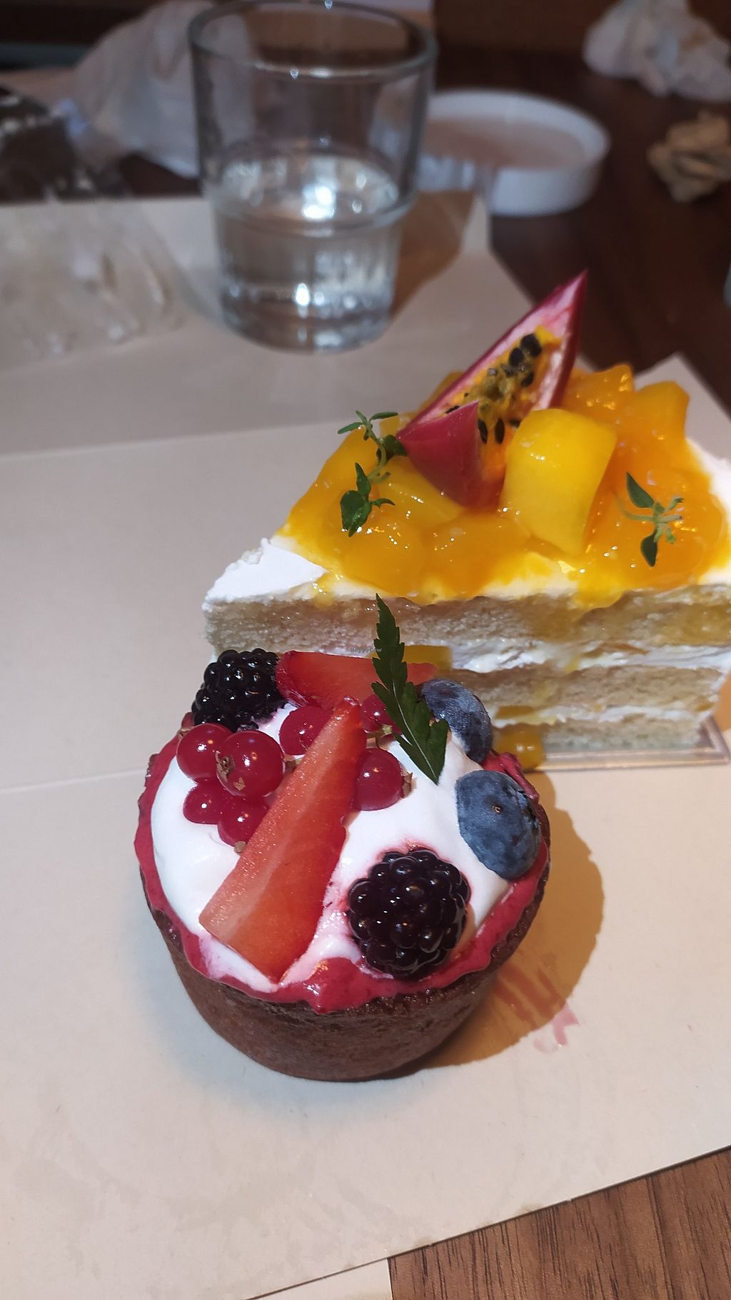 Berry tart and mango cake