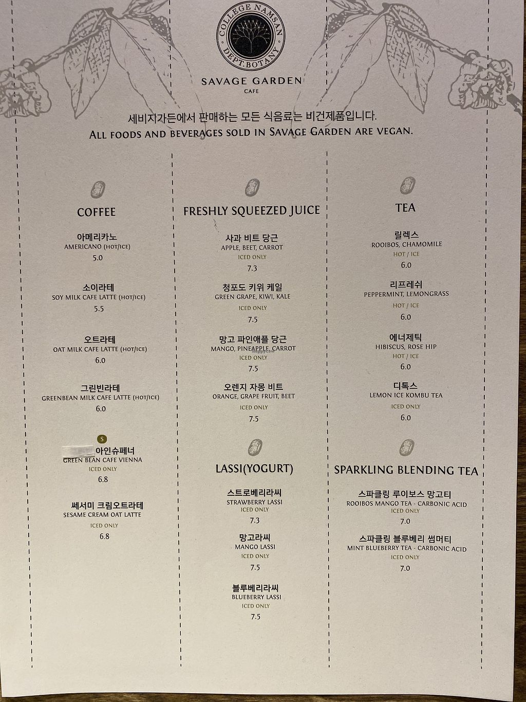 Drink menu