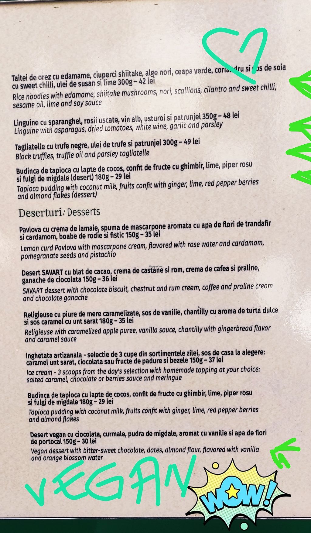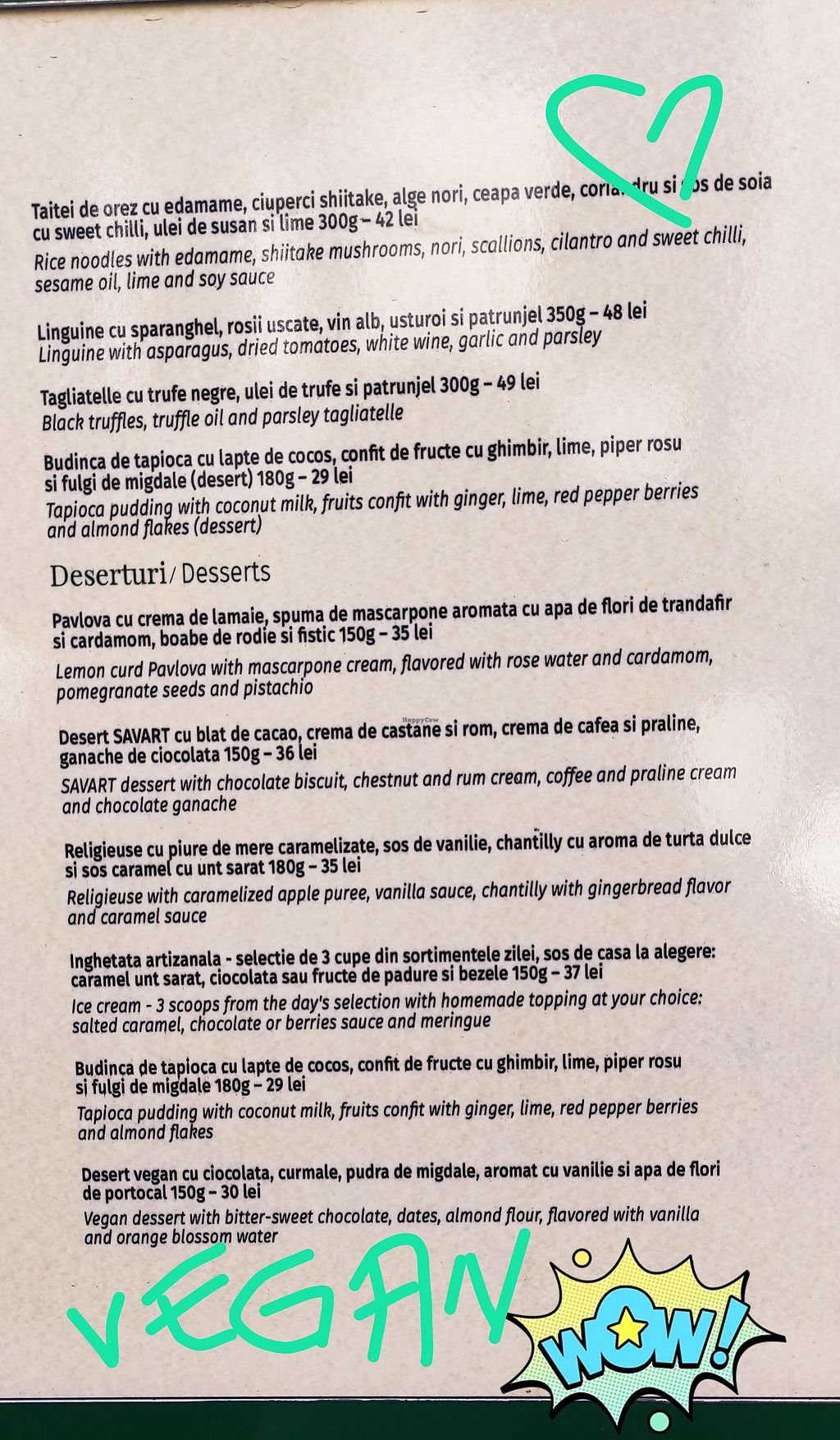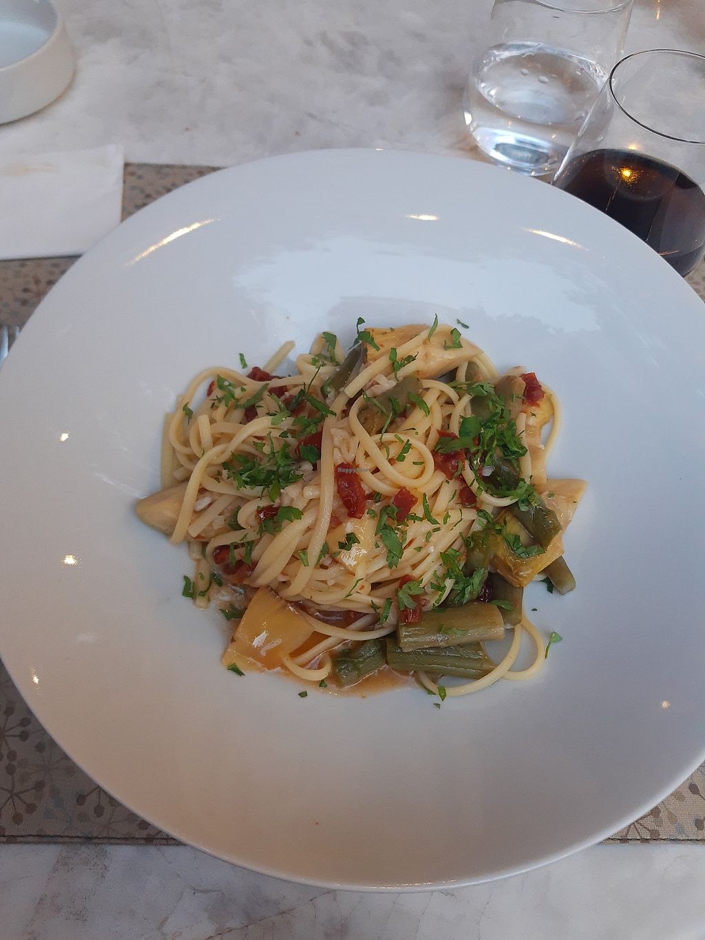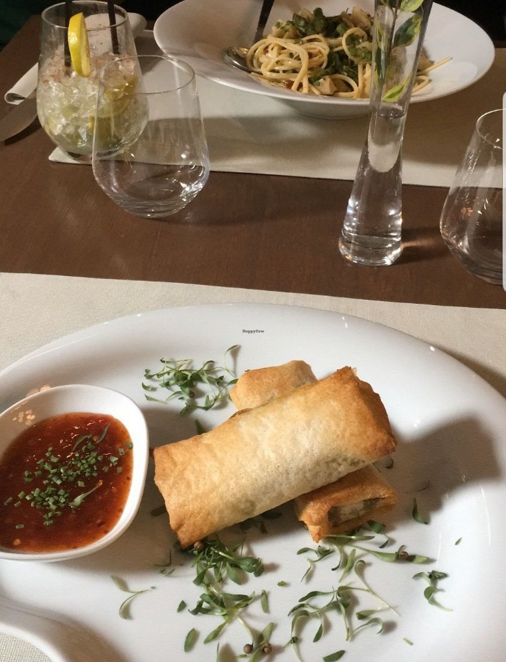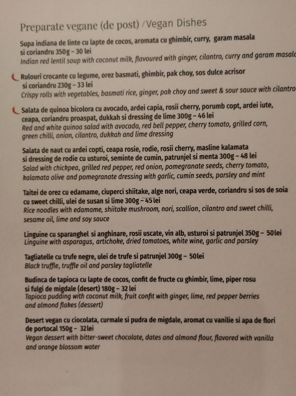 I tried the vegan linguine with green asparagus and artichoke at Savart and my friend had the crispy rolls with cilantro and both of it was really delicious. The prices are a little high compared to other restaurants in Romania but it's still cheap compared to other countries when you consider that it is a pretty fancy place.