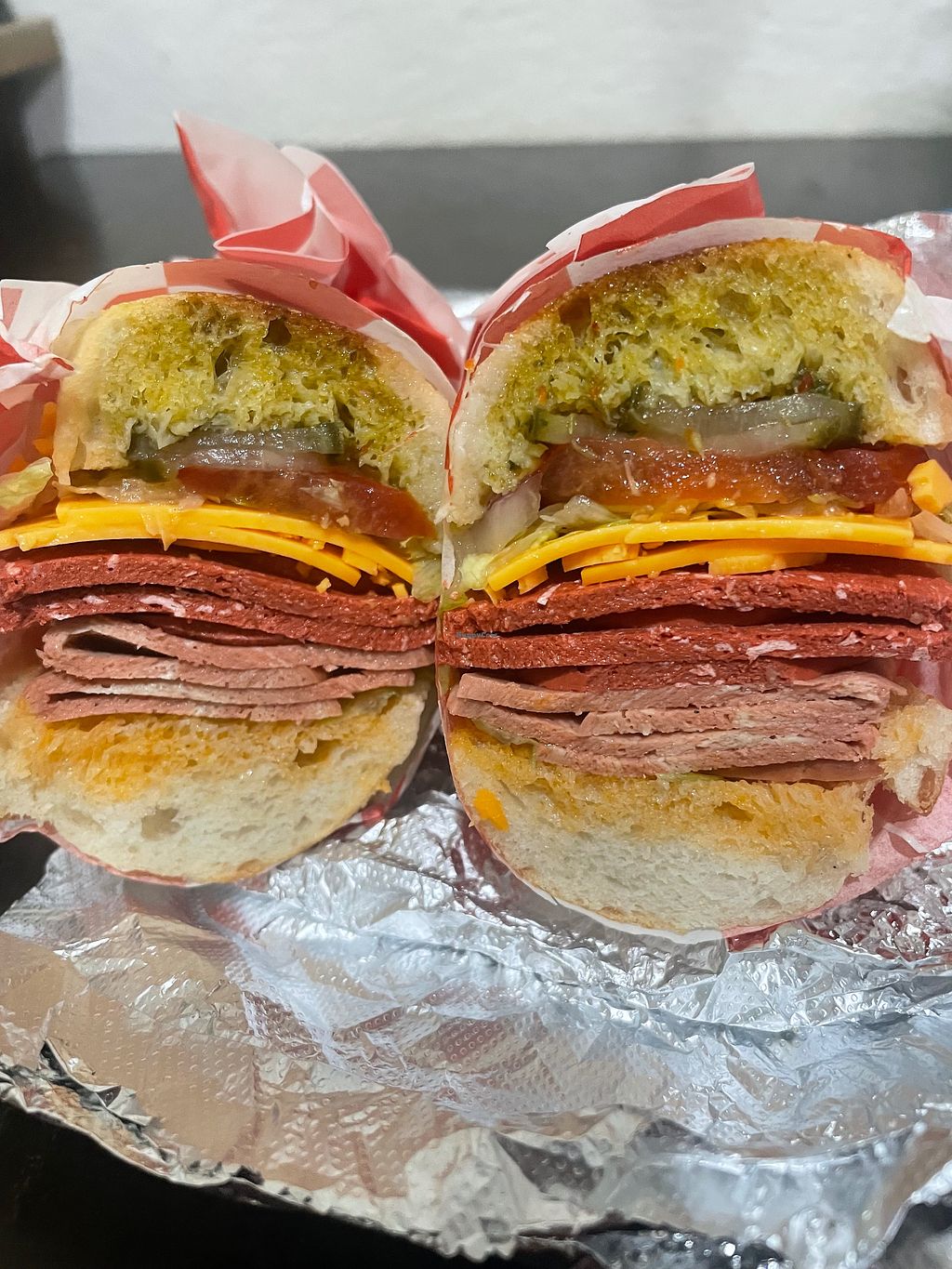 Yummy plant based ham and salami sub. The chimichurri and pickles really brightened it up. Vegan cheese a bit of a miss (as vegan cheese not melted is not great IMO). I added some salt and pepper which really made it.