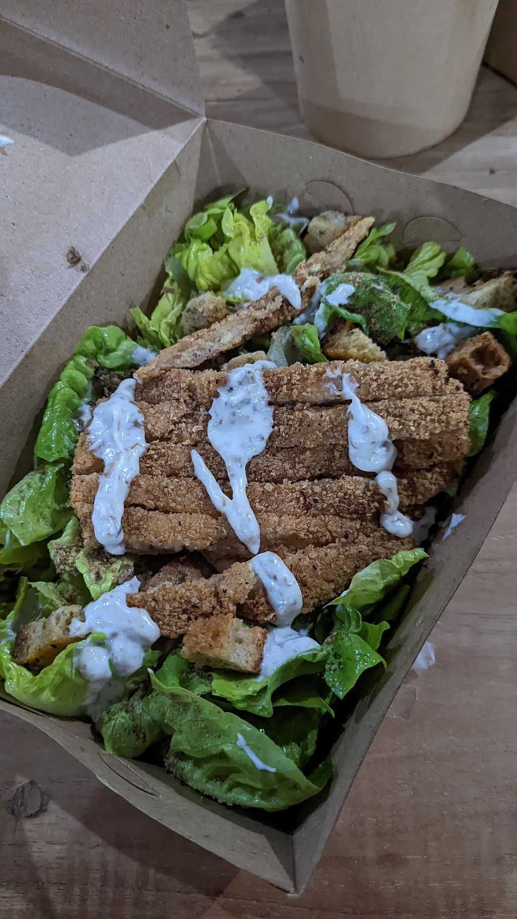 I ordered for delivery the Chinese soup, "chicken" Caesar salad, and banana cake and they were all great. The salad was a bit salty but still nice to have this kind of salad for the first time in many years. The food came quickly and the portion sizes were big.