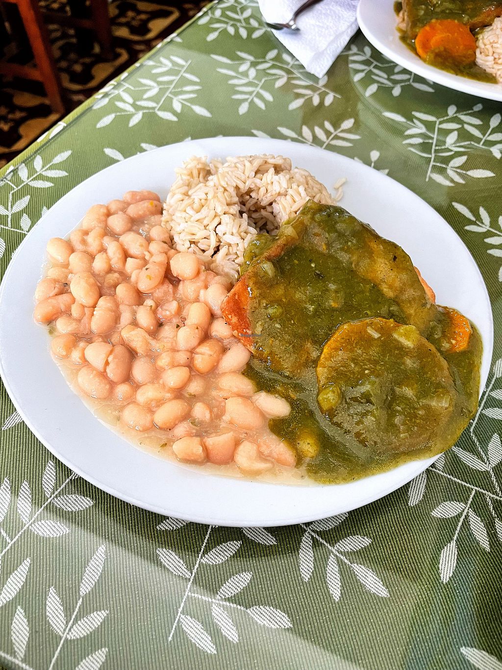 The main dish was grilled tofu with some sort of green sauce, bean stew, and brown rice. It was pretty good if a little under-seasoned, and I didn’t like the drink at all because it was strangely gelatinous and gloopy. The ceviche more than made up for it though!