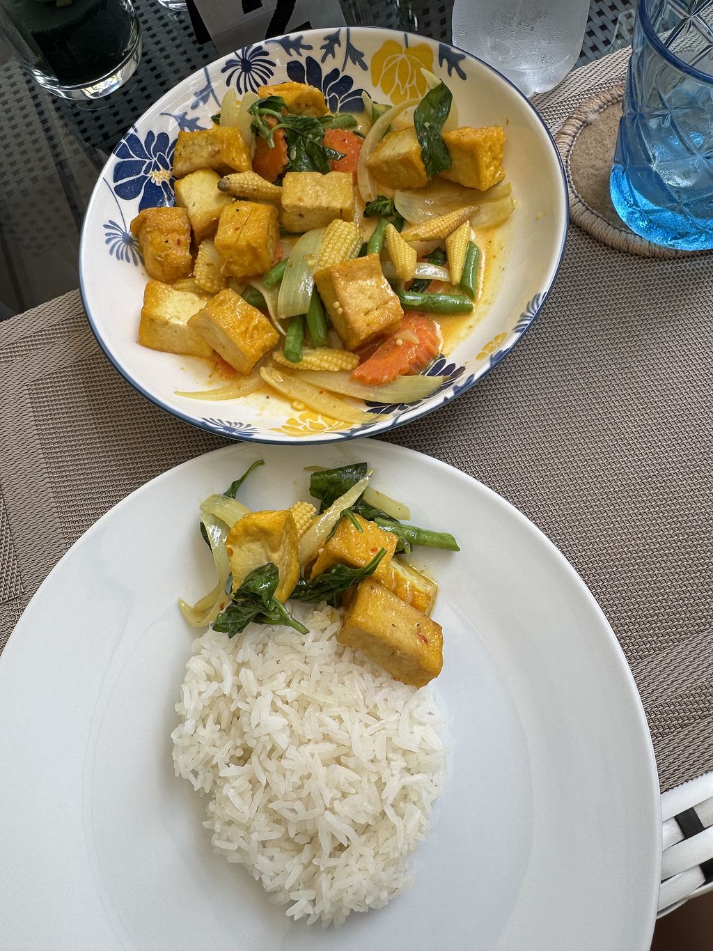 Vegetarian pad Thai and vegan summer rolls. Vegan masaman curry