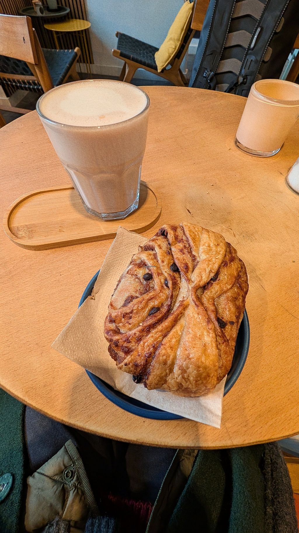 Schoko Franzbrötchen und Chai Latte mit Hafermilch