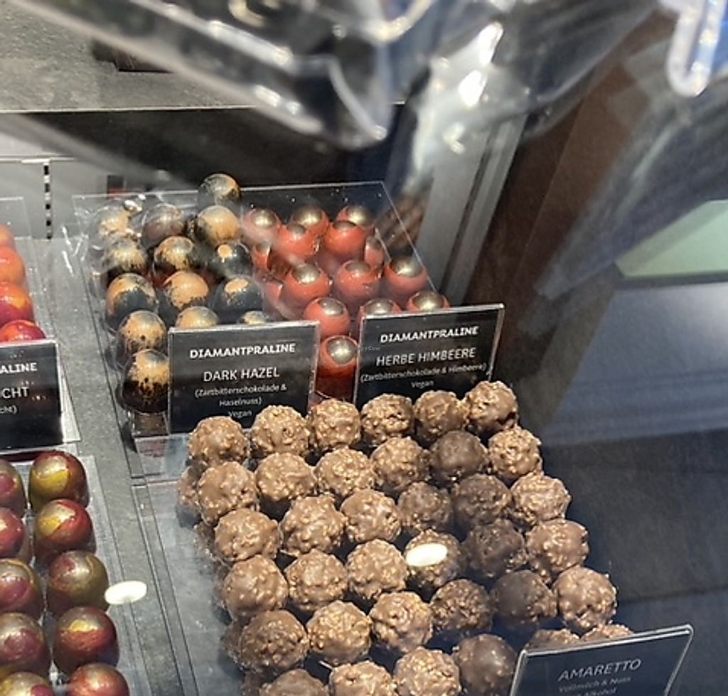 There are various clearly labelled vegan options. The hazelnut pralines and crunchy chocolate bark are fantastic.