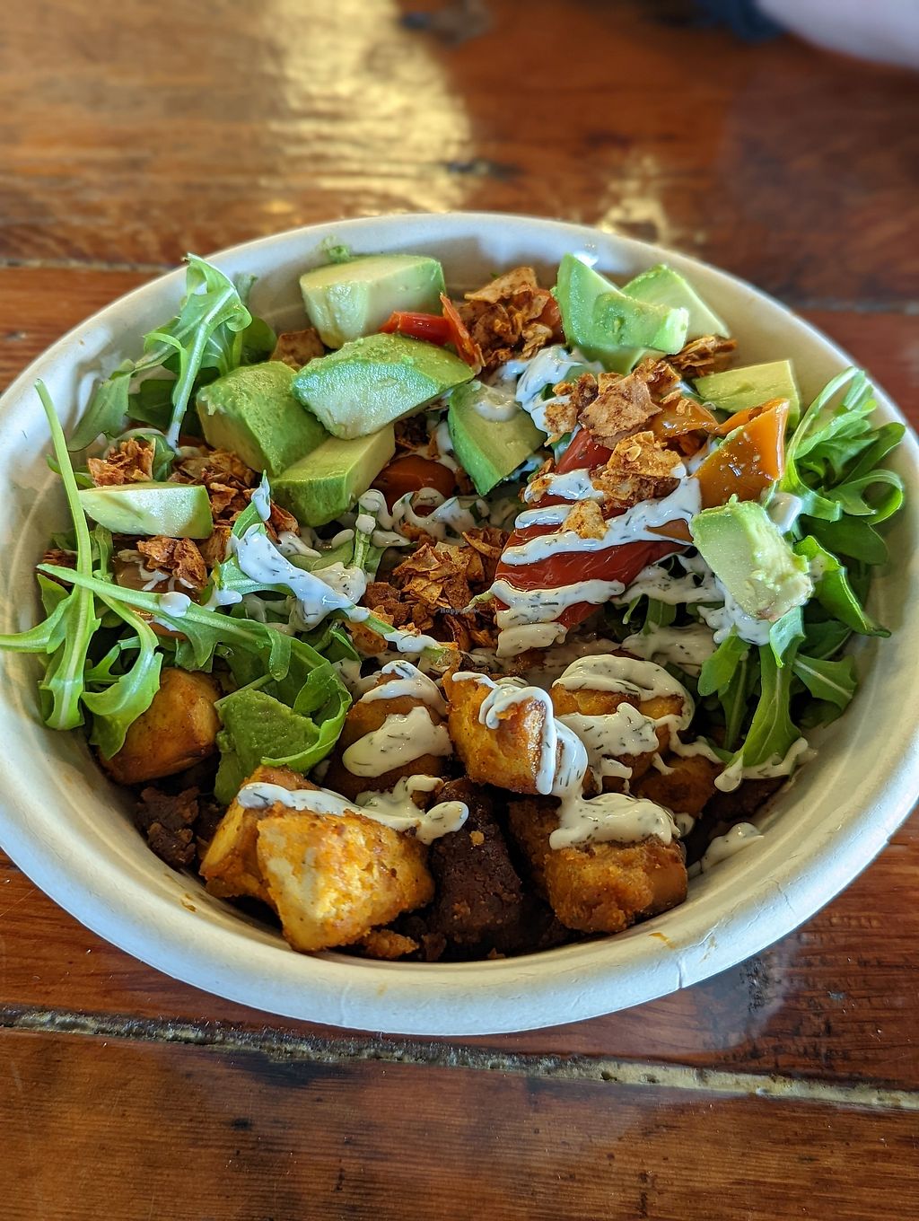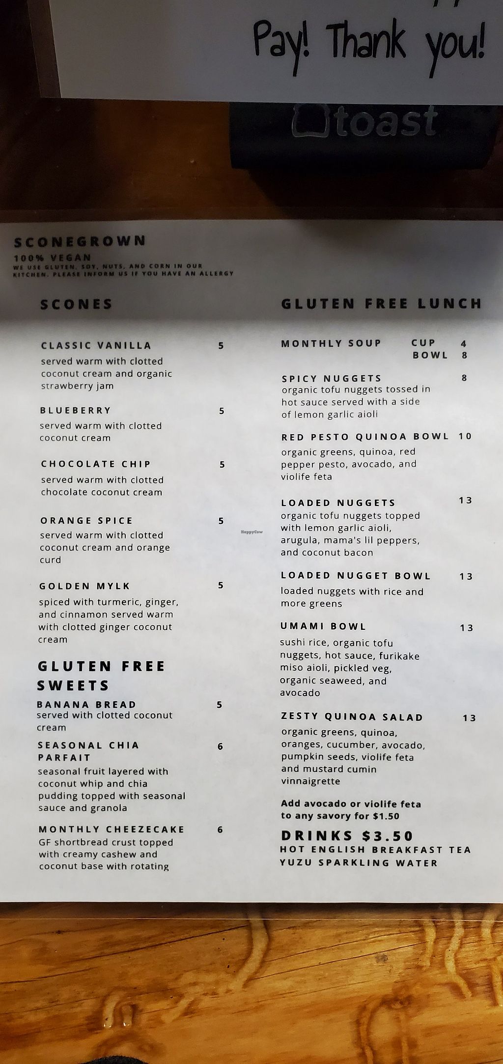 Came here a couple times for scones before returning for a savory lunch. Scones are delicious. Clotted cream, even better. But the nugget bowl is incredible! Ingredients go very well together and the super firm tofu was cooked just how I like it. Just wish they had a few more menu options!