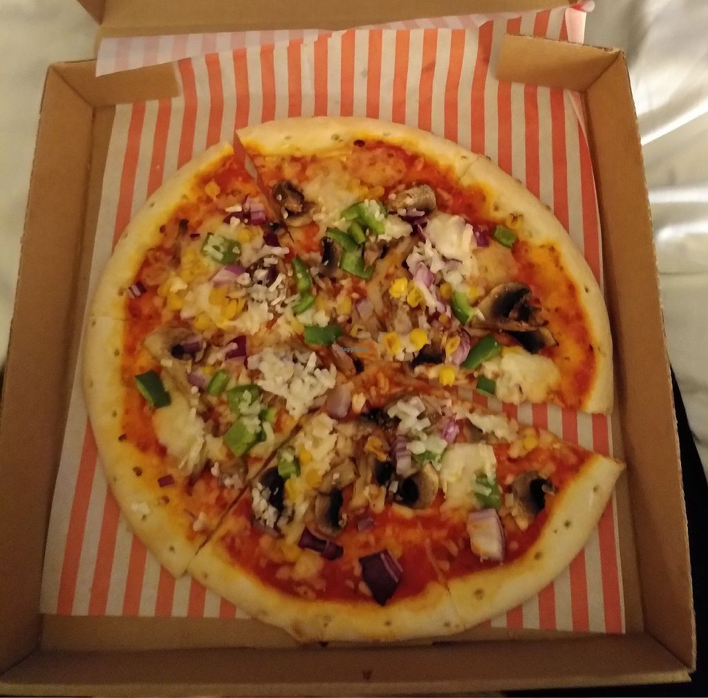 I was delighted to find somewhere offering vegan options in this small town but was disappointed by the quality. The dough was underdone and the green peppers and onion on top were pretty much raw. I also found it very expensive for the size of pizza.