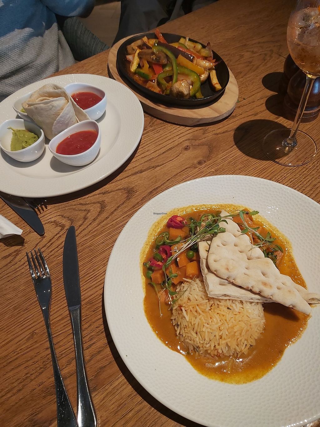 Fajitas (back) and Thai curry (front)