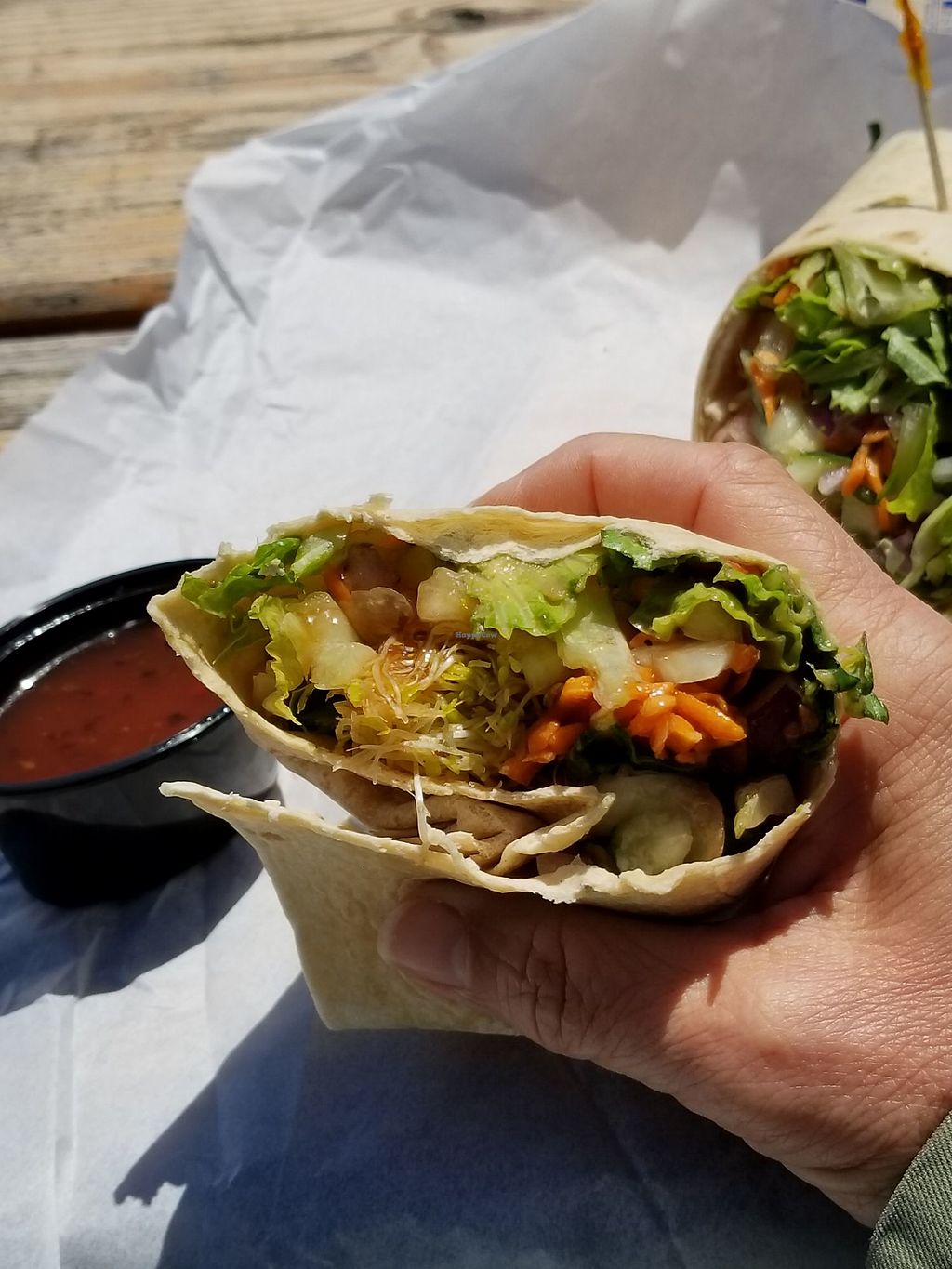 I stumbled upon Scovie's while visiting Charlevoix for the day. It was such a wonderful little find after stopping in numerous other restaurants in the town that could not accommodate my food restrictions. Right away the owner stated that they were a made to order type of place and that they could accommodate my dietary restrictions. YAY! Their menu lists several vegetarian options, which the owner happily said they could make vegan. I was debating whether to have the Veggie Wrap or their Sweet Potato Quinoa Burger. They both sounded delicious. I ended up having the Veggie Wrap because I was going to sit in the marina across the street to eat. Just seemed like a simpler picnic type option. The Veggie Wrap was super fresh with romaine, sprouts, cucumbers, tomatoes, red onion, celery, and carrots. They offered a lot of dressings that are vegan. I chose the sun dried tomato which was tasty. I would definitely go back to this place based on the friendliness of the owner and the unique selections. Oh, they also had a Veggie Burger Burrito that used their black bean burger in it. That sounded delicious too!