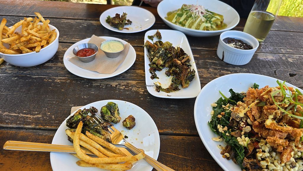 We have eaten here many times as well as the Long Beach location, slightly different menus but mostly the same. The grilled cheese is amazing, we have to get when we come. The purple taquitos are also yummy. I have had the mushroom taco and the fried avocado taco, both delicious. My favorite is the warm cauliflower salad, it’s crunchy and a little spicy and tangy. The butternut squash enchiladas also very good. The stuffed shells are delicious, hard to believe they’re vegan because so creamy. The beets me burger is good, kids like it.