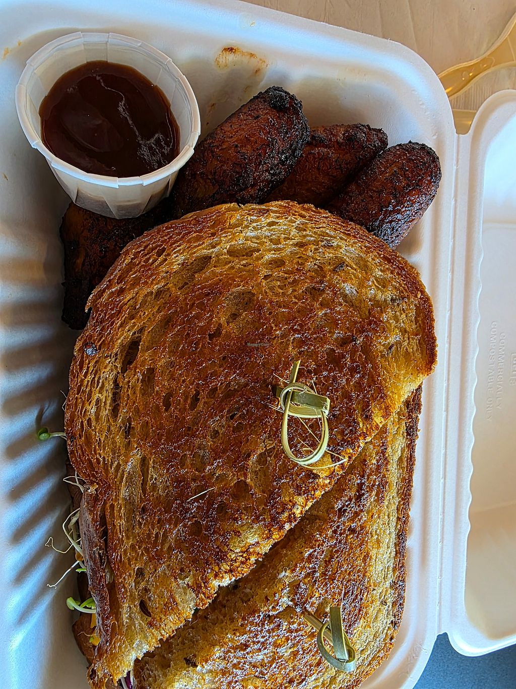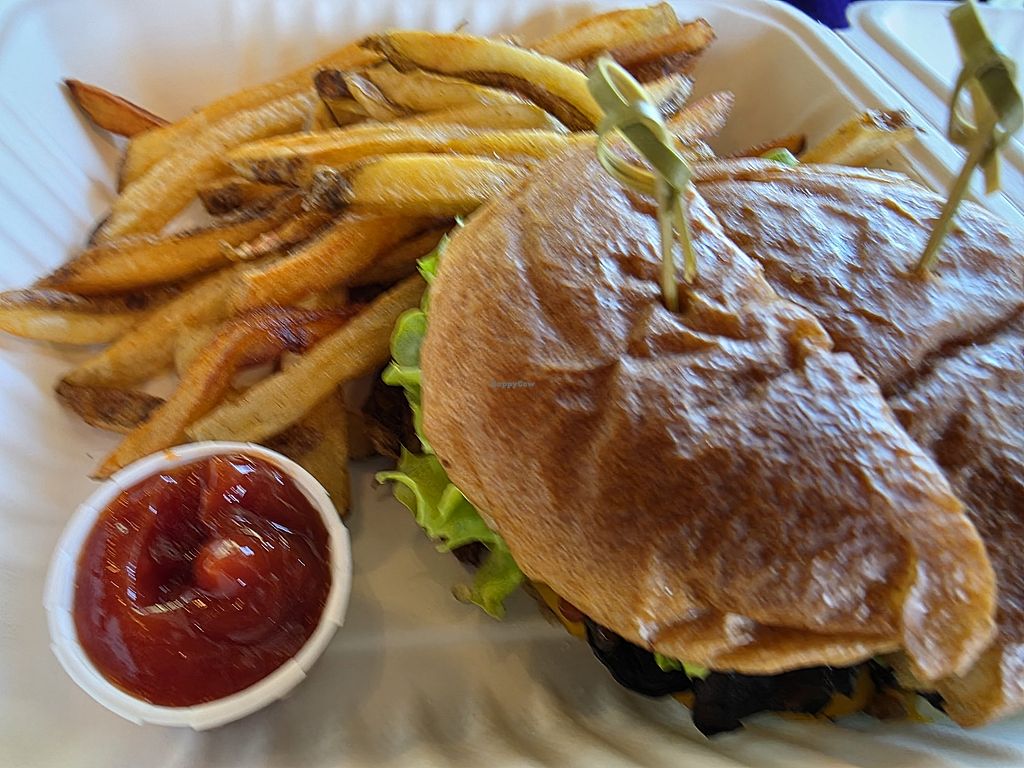 This is the loaded fries (cashew cheese), and the PETA award winning h…
