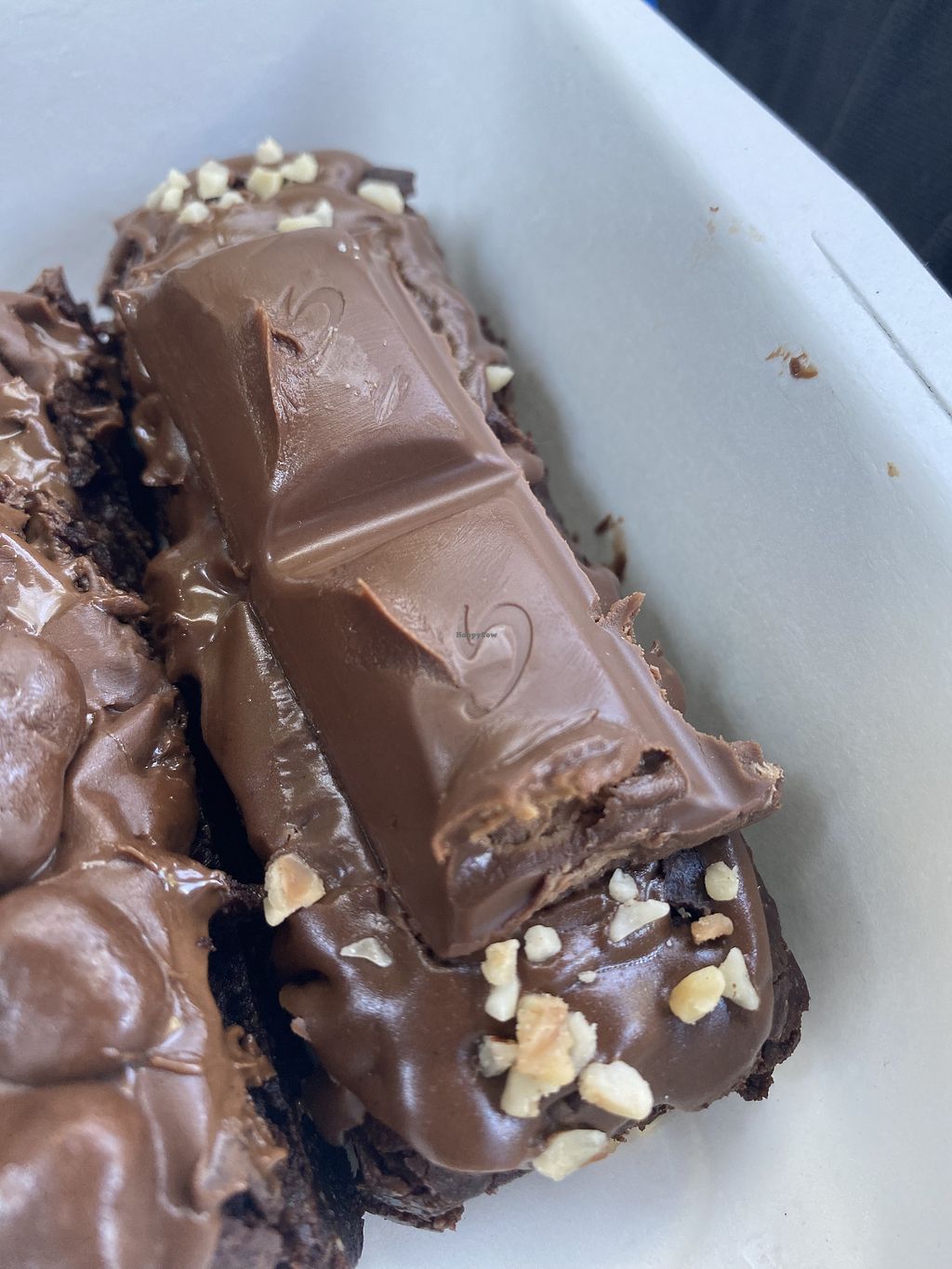 We came across them at Clarks Village in Street and I was pleased to find 4 vegan options among the range of brownies. We got two of them – Praline and Galaxy Caramel, and Honeycomb. Both were delicious! Both consisted of the same chocolate brownie with different toppings. The brownie was rich, chocolatey and had a nice thick brownie texture. Both toppings were also really tasty and added to the chocolatey indulgence, so good!