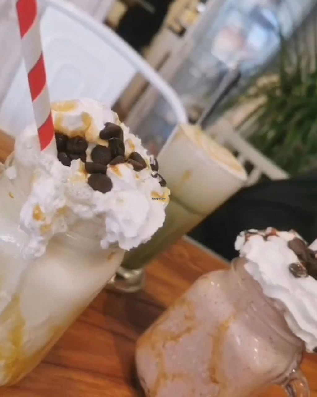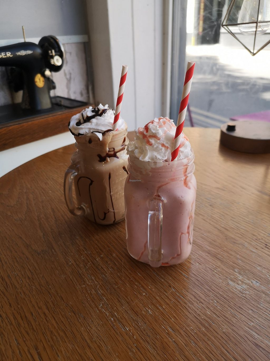 Banana and cinnamon shake and mint choc chip shake