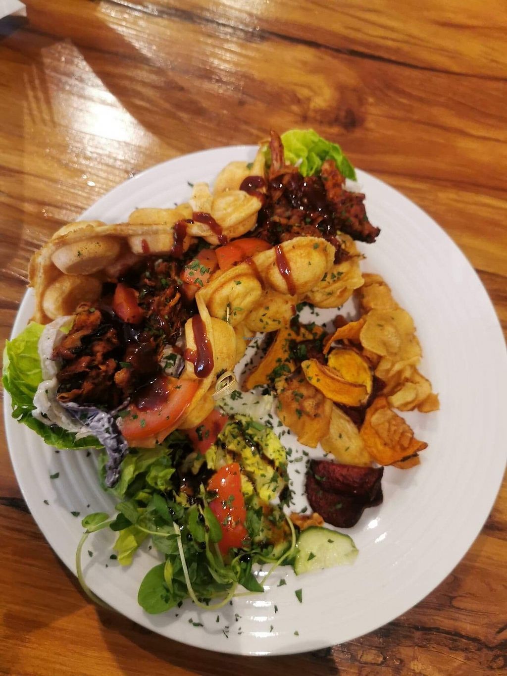BBQ Bubble Waffles, Sweet Potato Fries and Chicken Burger