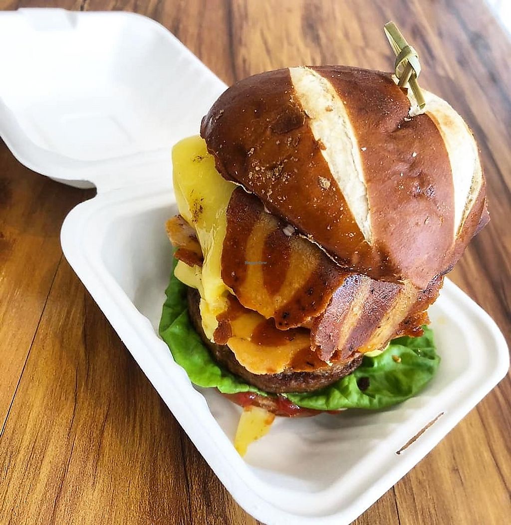 Vegan double cheeze burger with extra bacon