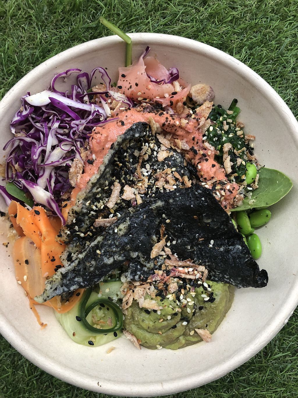 Plant-based/vegan delivery offering burgers, bowls and sides. Examples of items include the classic burger, the sushi burger, the rendang bowl, the poke bowl, arancini balls, fries and drinks. Look up on the wall for the black & white "Secret Burger Co." sign in the tiny white painted alley between the two buildings and follow the signs. Reported closed September 2024.